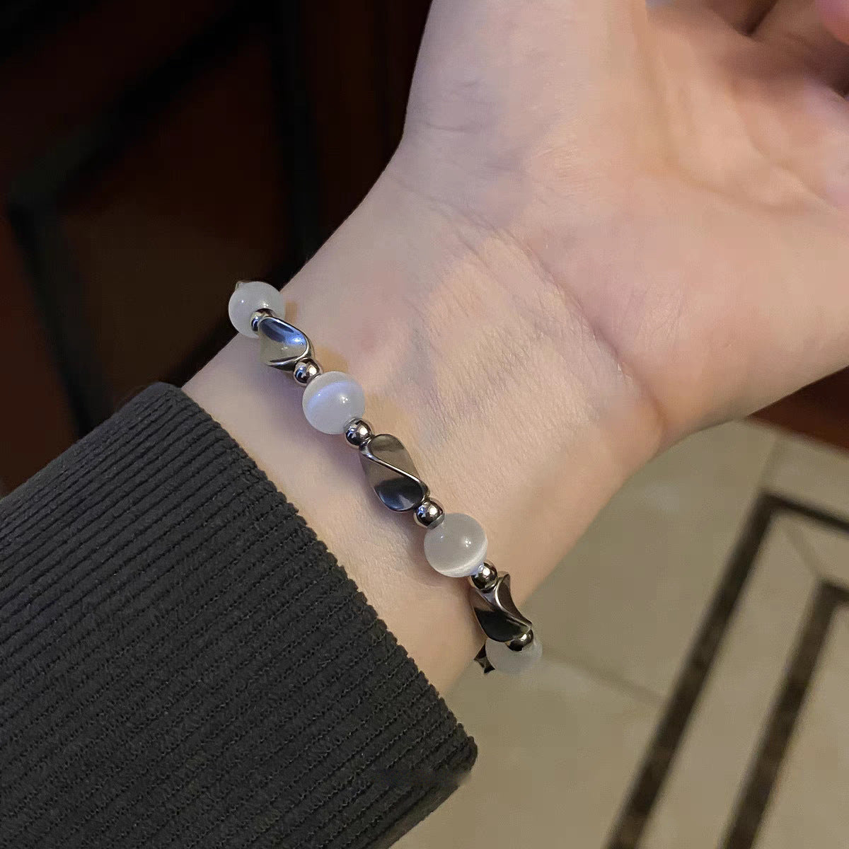 To keep its finish looking fresh, wipe the bracelet with a soft cloth after wear and store it in a protective pouch away from sharp objects. Avoid exposure to harsh chemicals and solvents. For occasional touch-ups, a clean jewelry cloth will help maintain its subtle sheen.