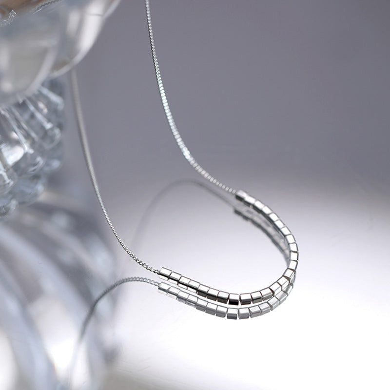 This Mini Beading Square Silver Necklace adds a subtle yet elegant touch for any outfit. Featuring mini square beading, this necklace has a delicate look that makes it perfect for everyday wear. Glistening in the light, it makes a great accessory to accentuate your wardrobe.