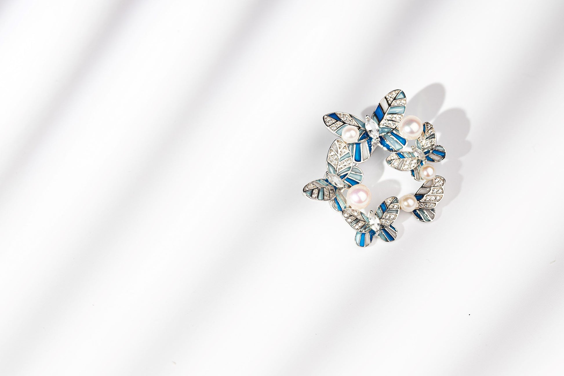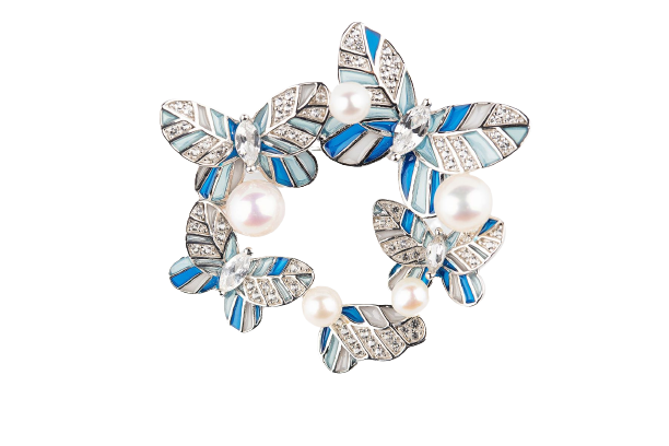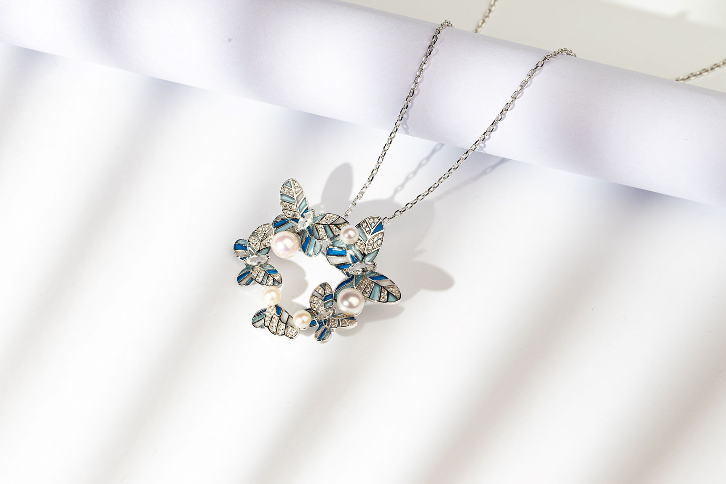This luxurious piece of jewelry is crafted with exquisite attention to detail, featuring exquisite enameled butterflies pendant with pearl, nestled in a circle. Perfect for adding an air of elegance to an evening event, the Brooch Necklace dual purpose design allows you to wear it as a statement necklace or a stylish brooch. Make this timeless piece yours and let its beauty captivate all those around you.