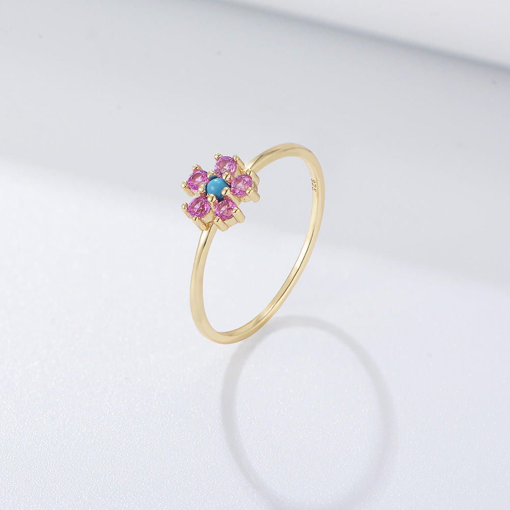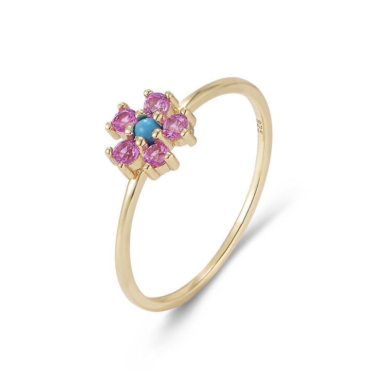 This Turquoise with Zircon Flower Sterling Silver Ring is a showstopper. Crafted from sterling silver, this stunning ring features a beautiful flower shape with a Turquoise and Zircon center and petals. Sleek and stylish, this exquisite piece of jewelry will make the perfect addition to your collection.