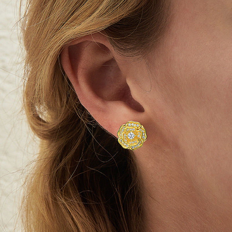 This chic Zircon Camellia Silver Studs Earrings add a touch of elegance to any look. The classic studs feature sparkly Zircon stones for sparkle and the perfect Camellia design for a touch of refinement. It's an ideal accessory for any occasion.