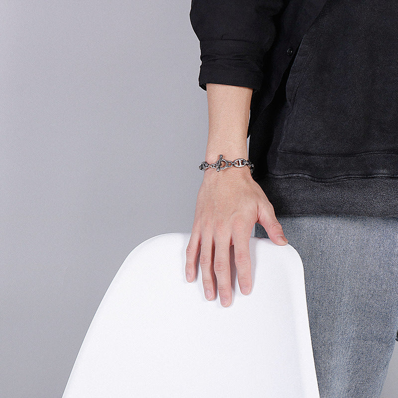 Titanium Steel Japanese Chain Bracelet with Creative Lion Head Design for Men's Street Fashion Accessories