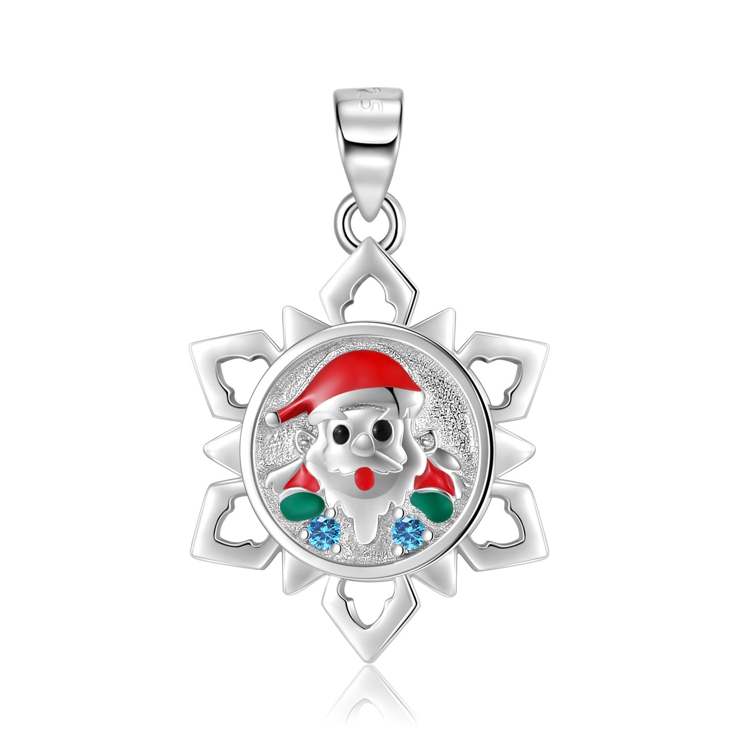 Christmas Santa Claus Snowflake Badge Silver Necklace