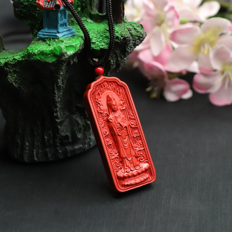 Red Sand Flame Standing Guanyin Pendant with Cinnabar Stone