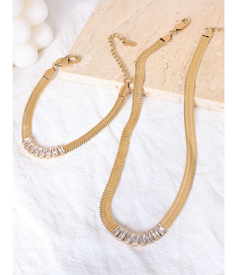 Zirconium Steel Necklace and Bracelet Set with 18K Gold Plating