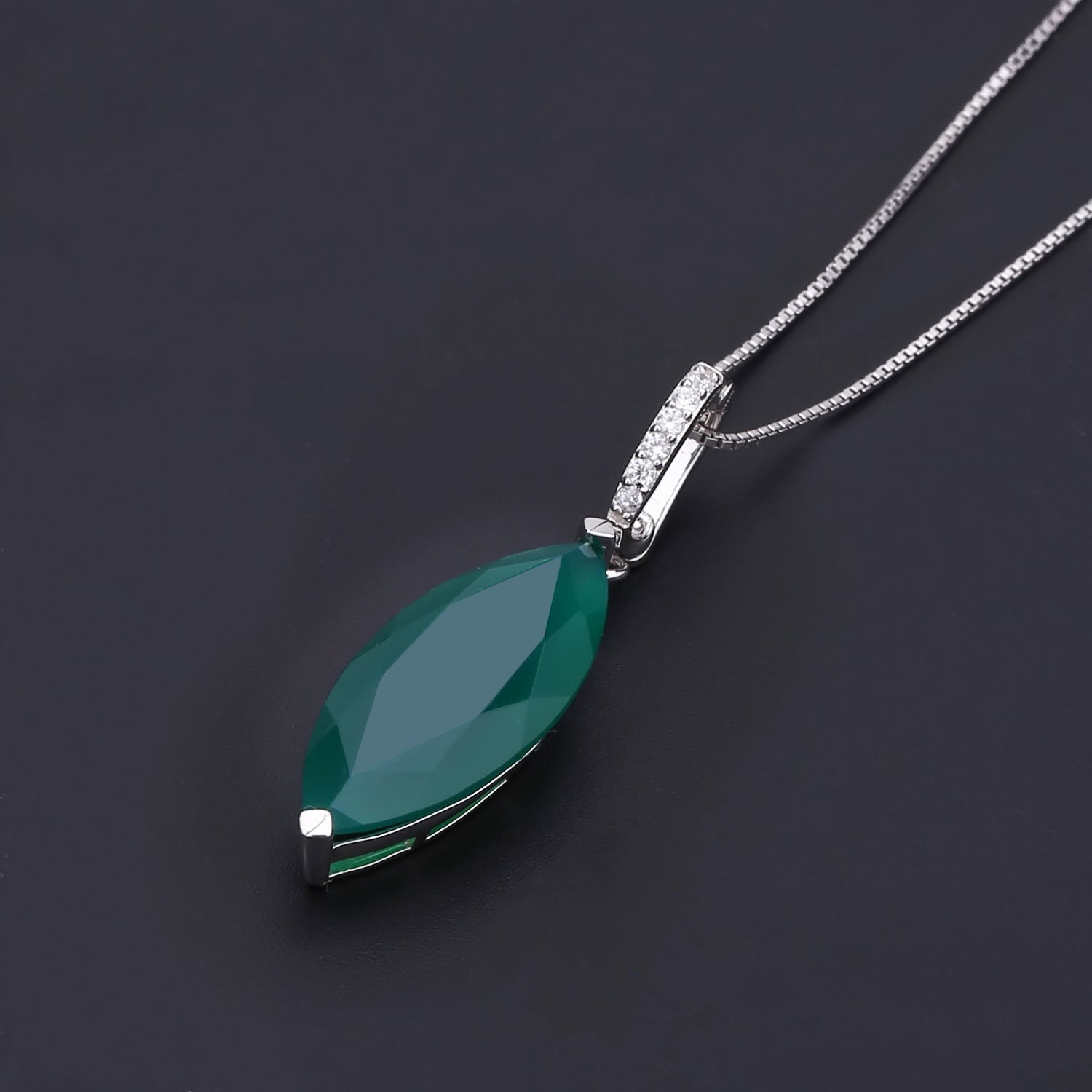 European Temperament Design Inlaid Green Agate Marquise Pendant Sterling Silver Necklace for Women