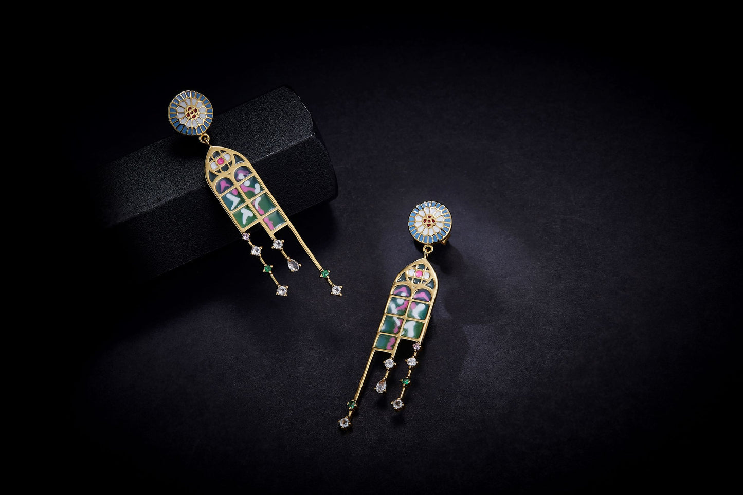 Adorn yourself in this refined earrings, crafted with exquisite enamel for an intricate pop of colour. This Paris Flower Window Colourful Enamel Drop Earrings feature colorful enamel craftsmanship and glistening topaz for a captivating sparkle and make for a piece of jewelry that will bring out the sophistication in any outfit.