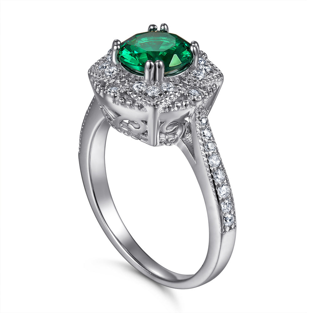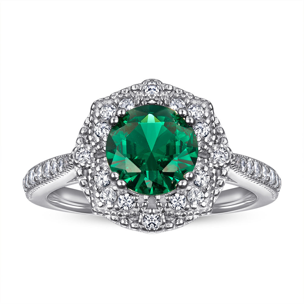 Colourful Round Zircon Octagon Soleste Halo Silver Ring for Women