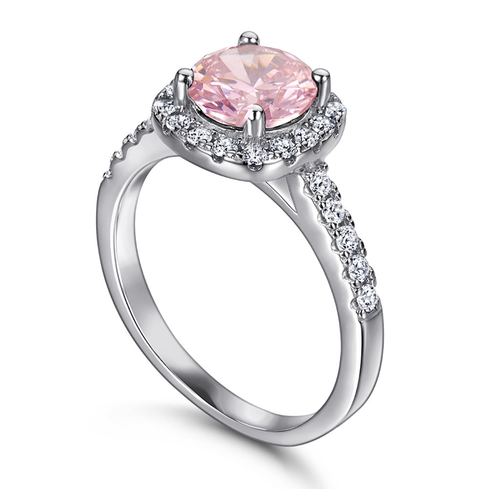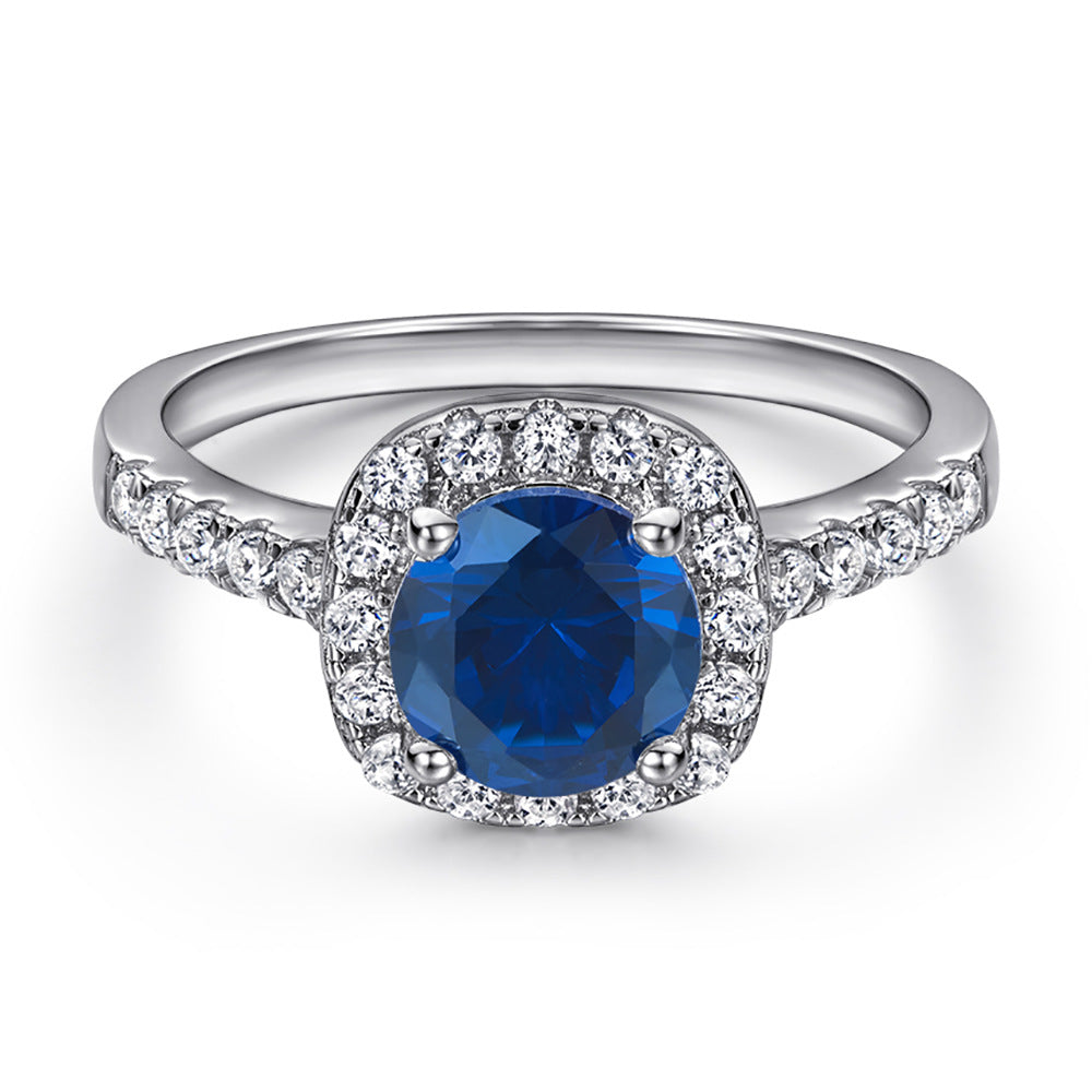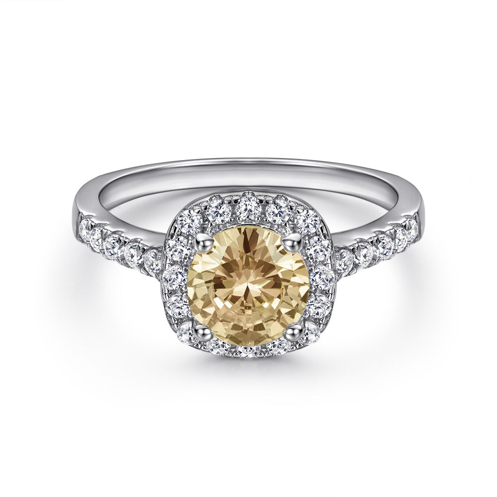 This classic and elegant ring for women features a vibrant different colour round zircon and surrounded with square soleste halo for a luxury and sparly style. Crafted from sterling silver, it's perfect for adding a touch of sophistication to any look.