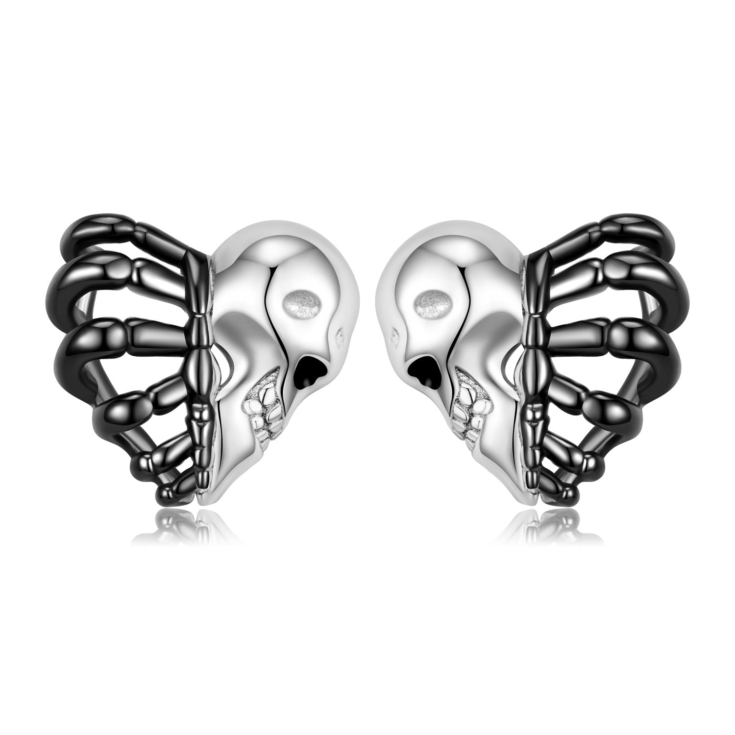 These Halloween Skull Face and Rib Skeleton Silver Stud Earrings are the perfect accessory for any spooky season. Crafted from sterling silver, the skull face and rib skeleton intertwine to form a heart shape, perfect for adding a unique touch to your style in halloween.