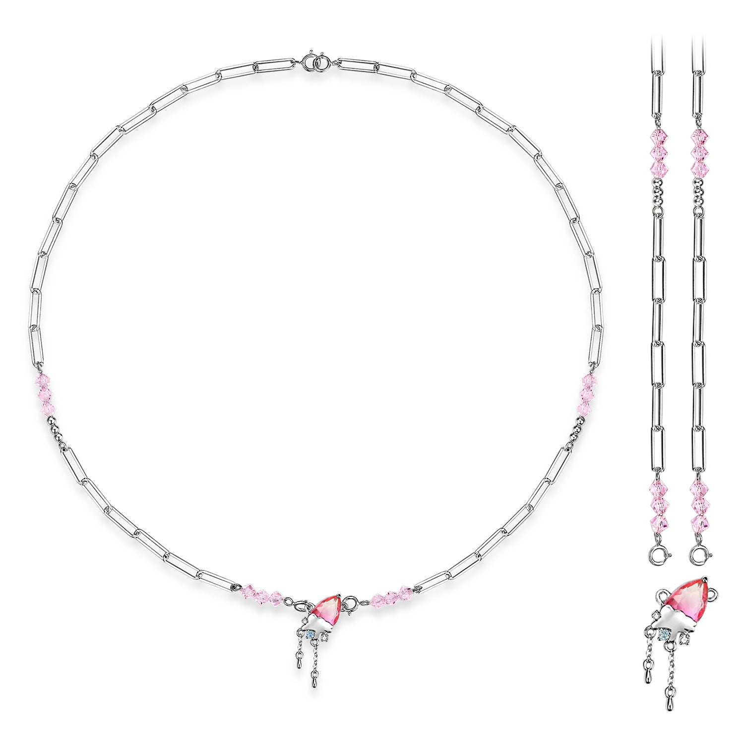 This freely combined Pink Zircon Pendant Splice DIY Silver Necklace allows you to create your own unique jewelry. The two O shape silver chain are decorated small pink crystals and a Pink Zircon Pendant, while the chain and accessories are connected through spring buckles for easy assembly and disassembly. Craft your own unique necklace with this DIY set.