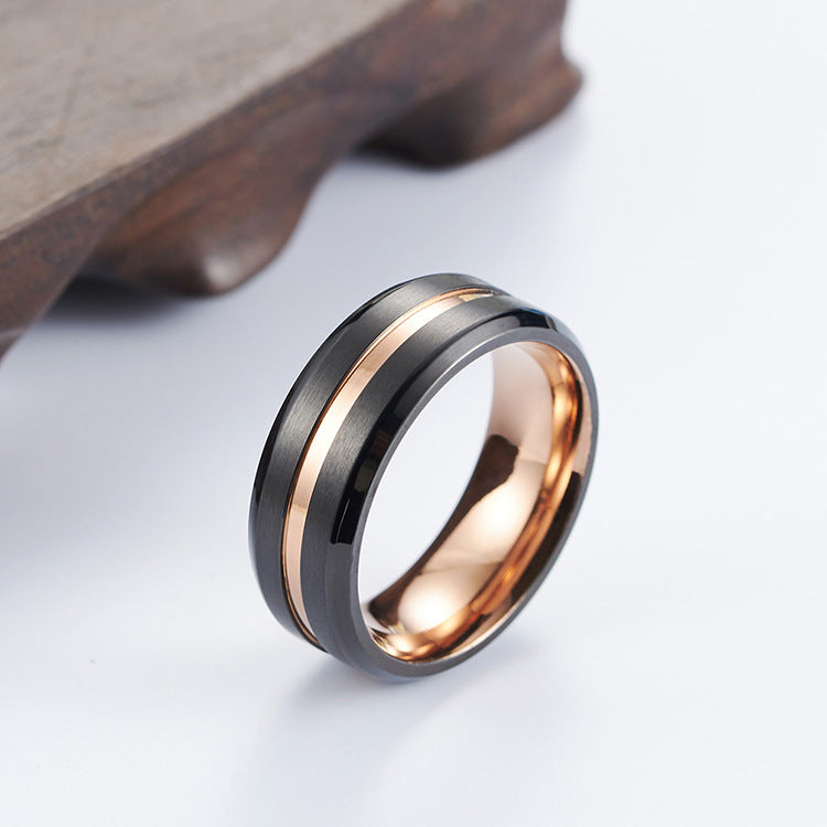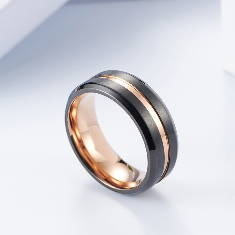 Black Rose Gold Two-Color Titanium Steel Ring for Men