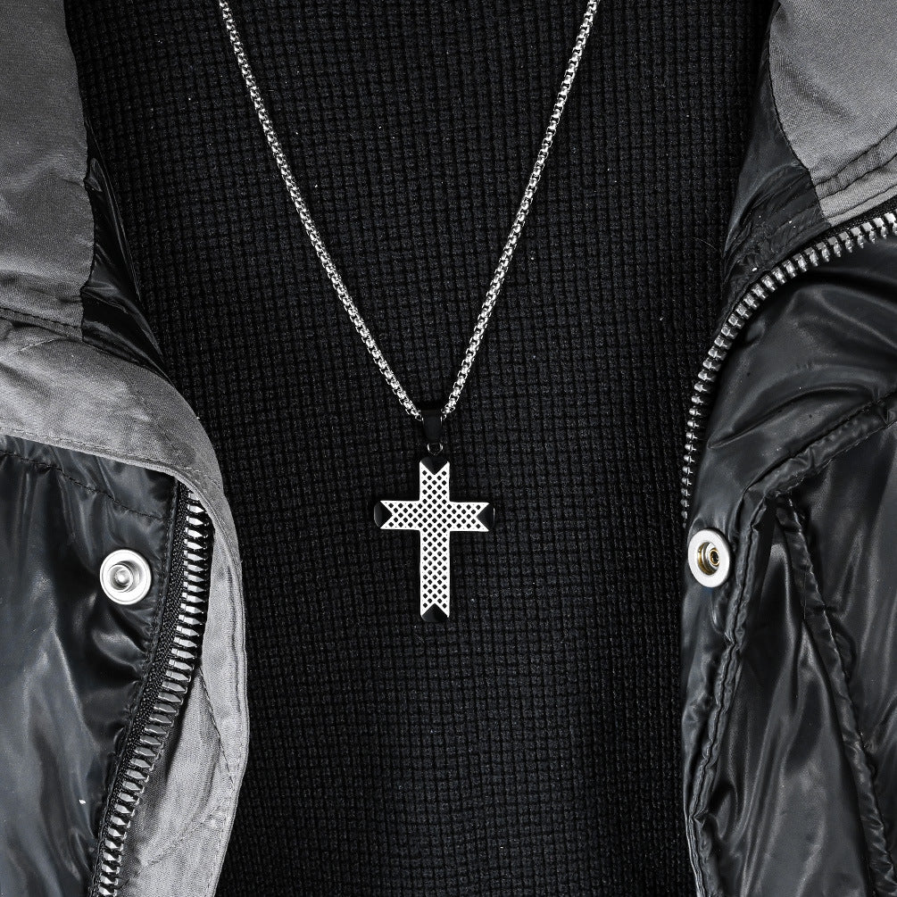 Discover our exquisite cross-border e-commerce jewelry collection, featuring the stunning double-color stainless steel cross necklace. This unique piece is designed for the modern man who appreciates niche personalized wear. Crafted from high-quality titanium steel, this pendant for men is not just a fashion statement; it's a symbol of faith and individuality.