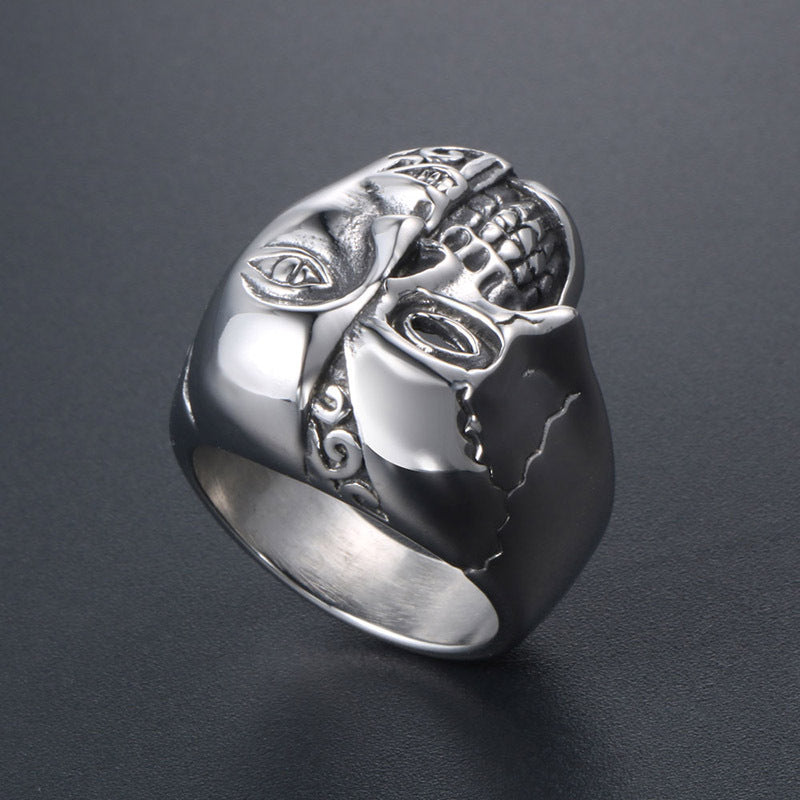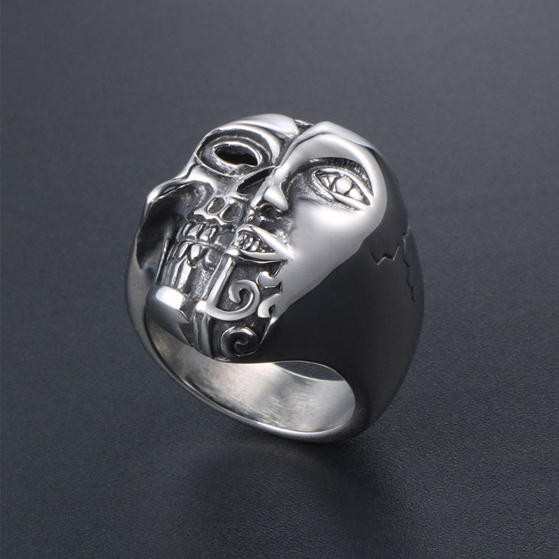 Personalized Two-Sided Face Avatar Titanium Steel Ring for Men - Unique Rock Accessories