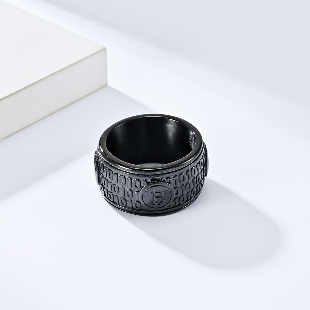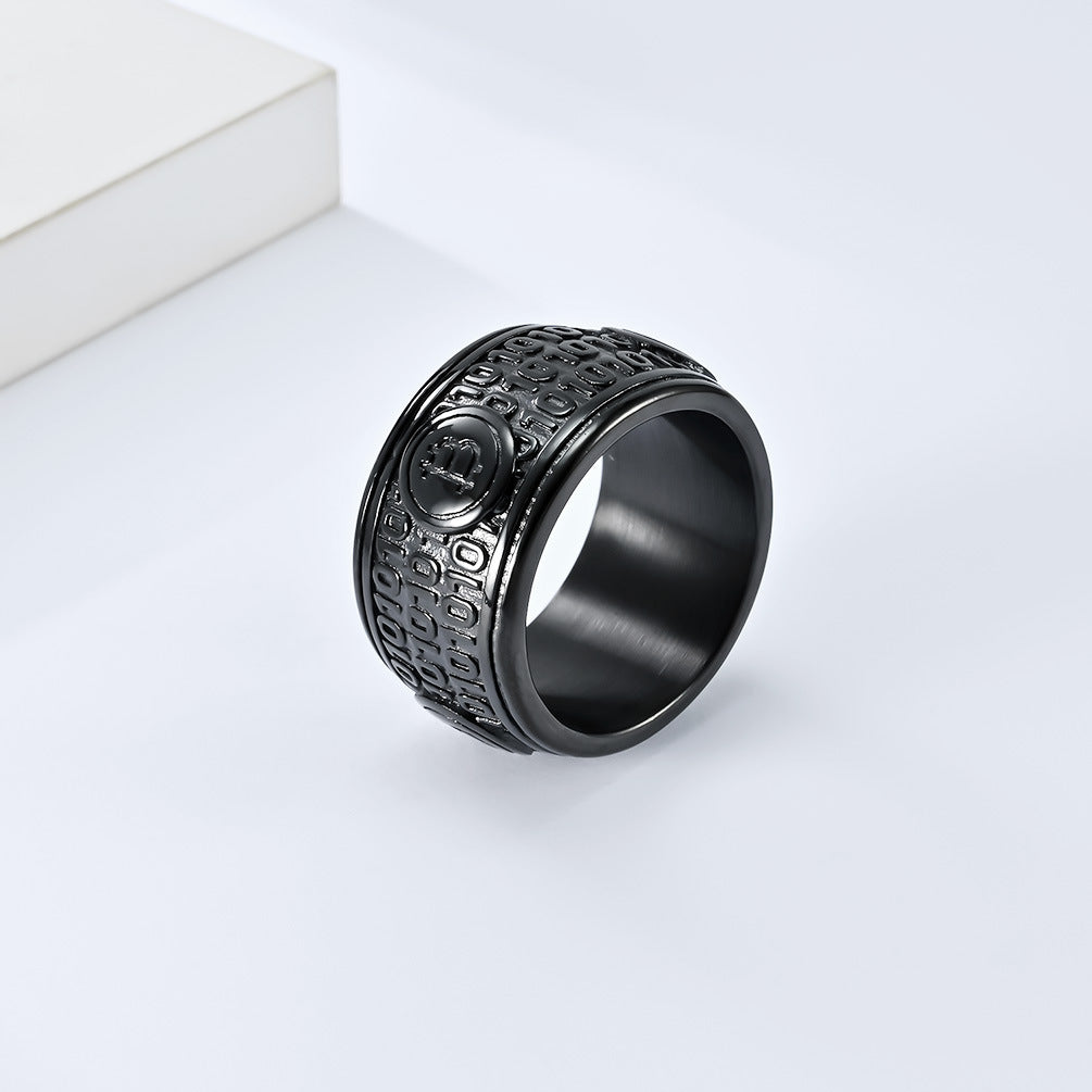 Cross-Border European Bitcoin Titanium Steel Ring for Men