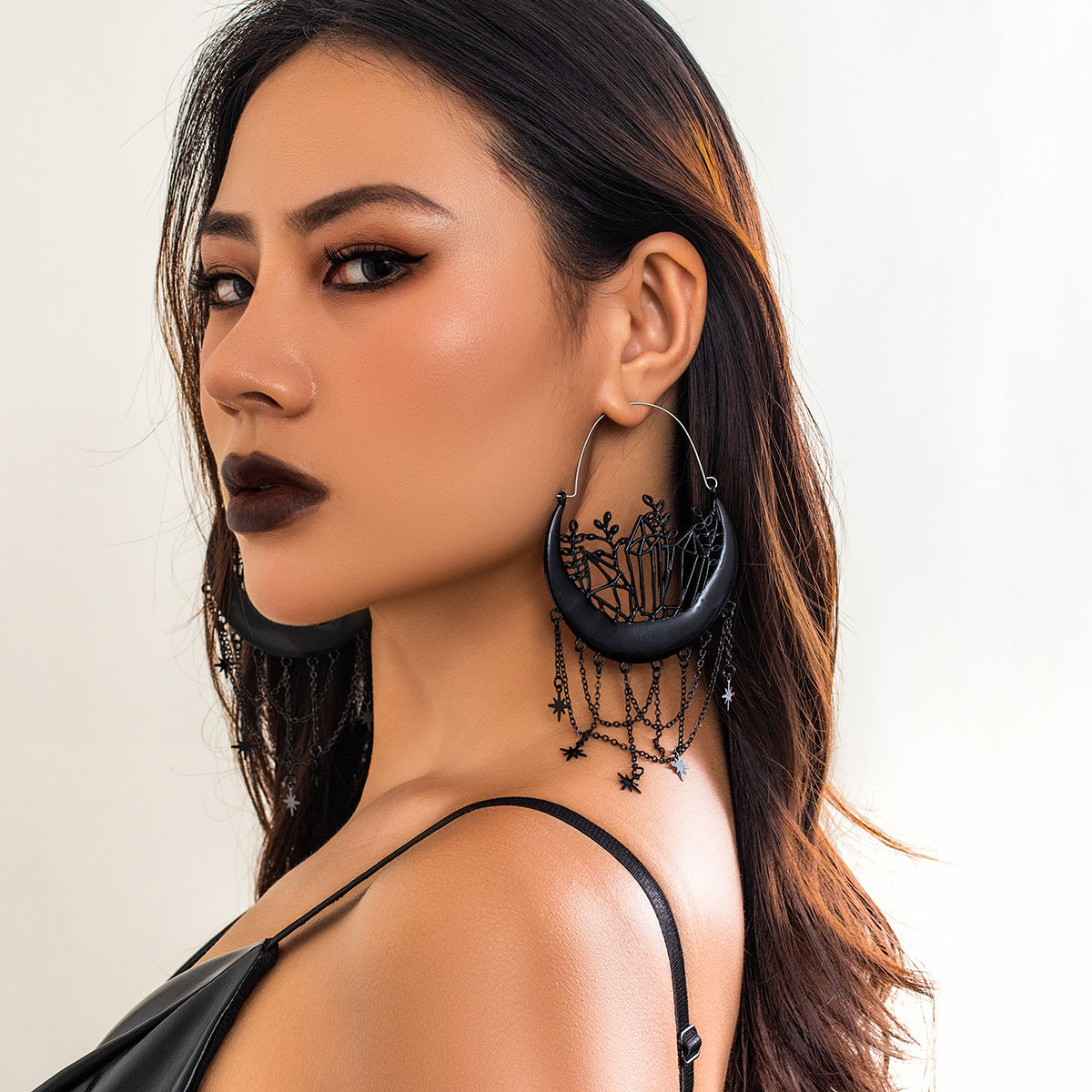 Gothic Hollow Basket Star Tassel Earrings designed for Halloween Costume parties.