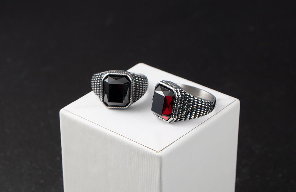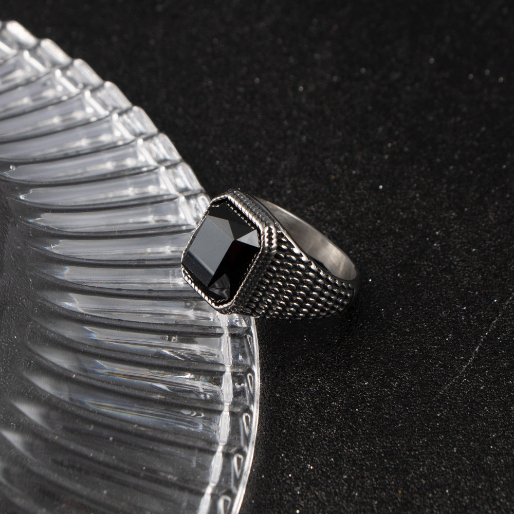 Retro Titanium Steel Men's Zircon Ring - Stylish Cross-Border Jewelry