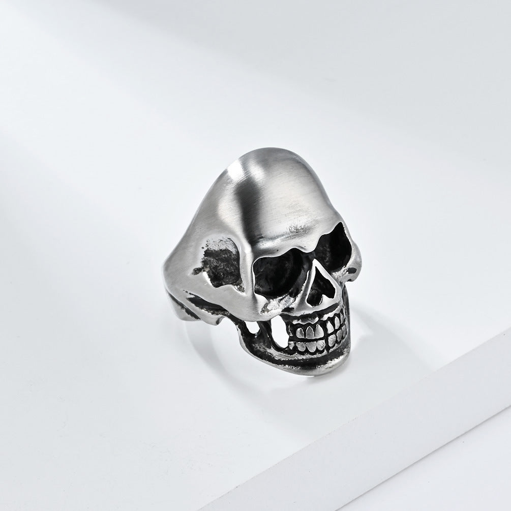 Elevate your accessory game today! Click the button below to order your Cross-border European and American retro matte brushed skull stainless steel ring now and make a statement that lasts!