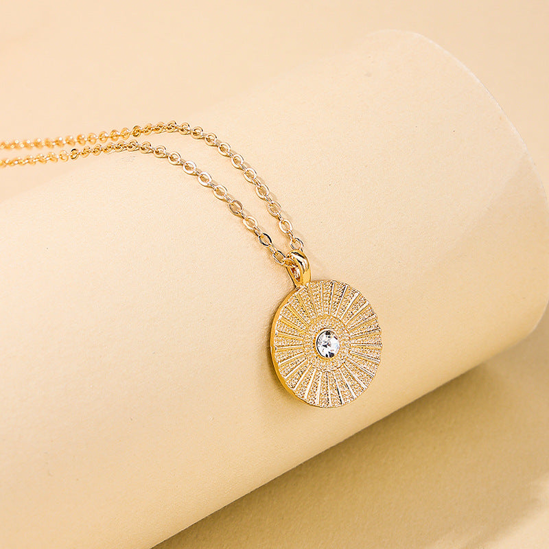 Vintage Style Metal Pendant Necklace with Sparkling Round Texture
