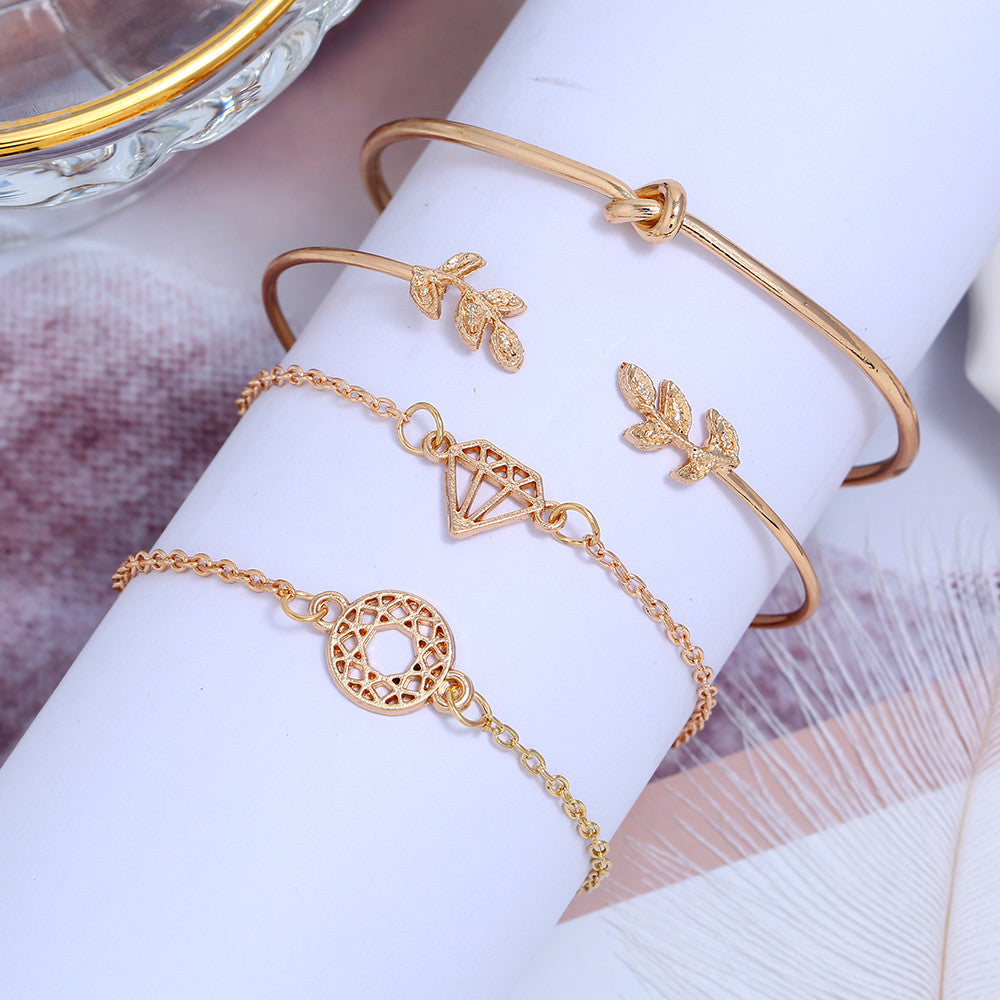 Make a statement with the Cross-border Fashion Leaf Opening Bracelet Set and stand out from the crowd with this versatile and chic accessory.