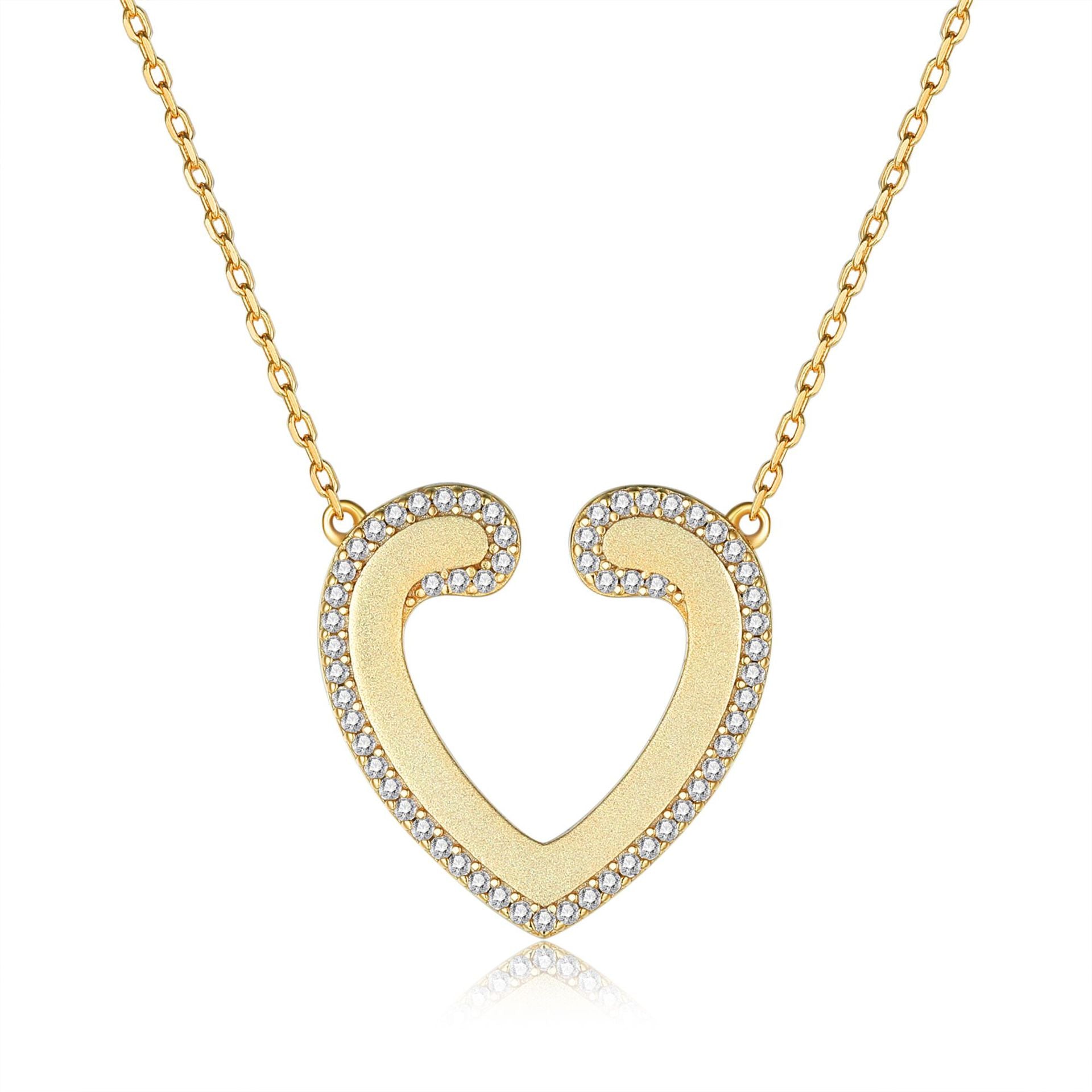 Golden Sandblasting Zircon Hollow Heart Pendant Sterling Silver Necklace