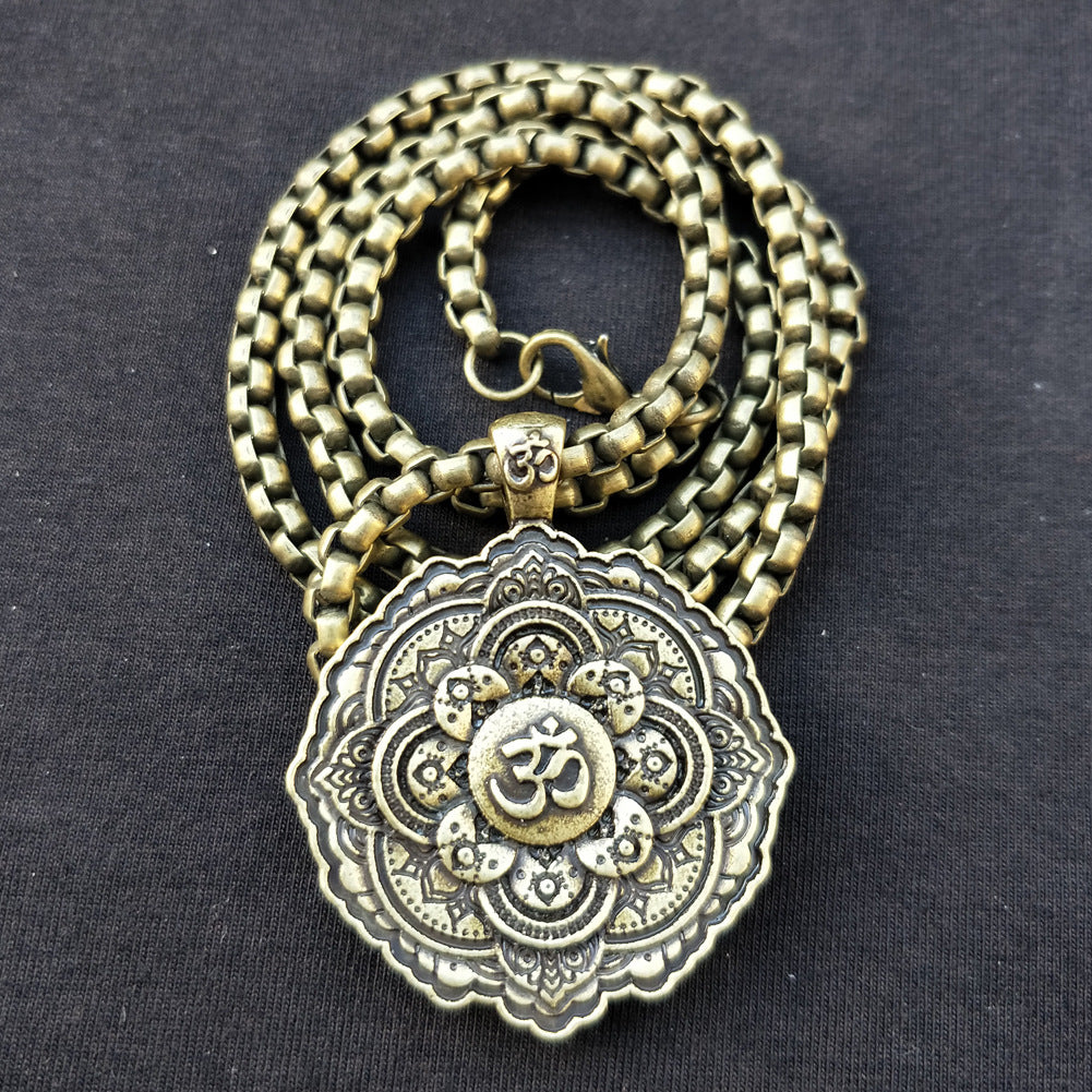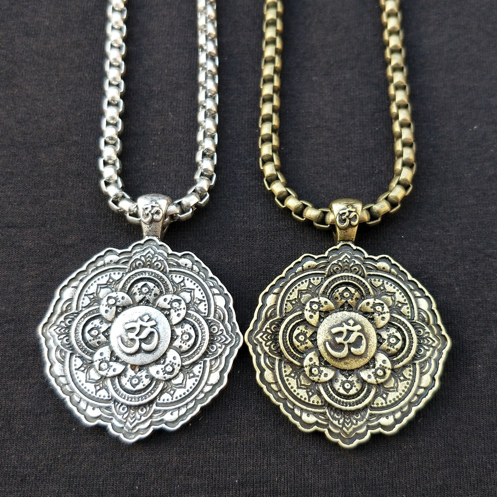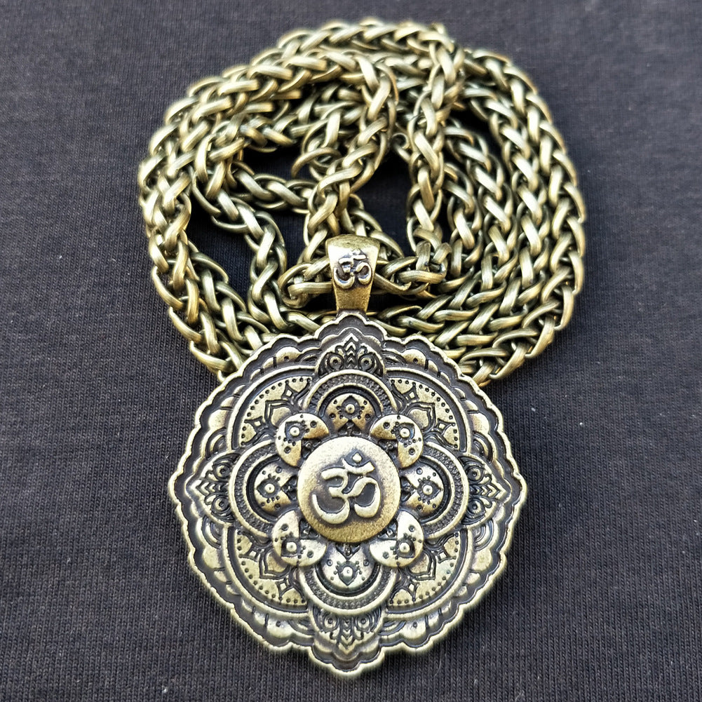 • Experience the spiritual essence of Indian mythology with our captivating OM necklace mandala pendant.
