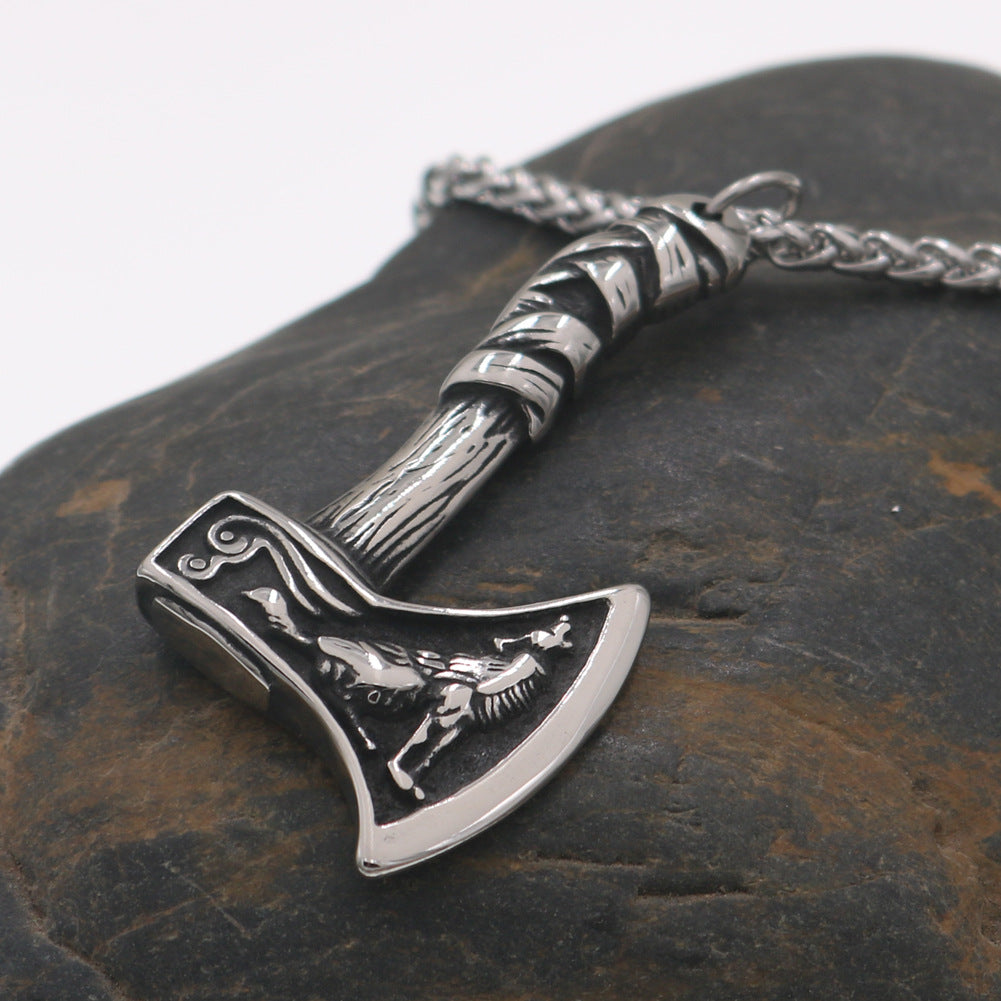 Embrace the power and mystique of Norse mythology with our exclusive Viking Odin axe pendant necklace. Crafted with precision and passion, this stainless steel pendant features intricate details inspired by the legendary Odin, accompanied by a stylish titanium steel chain designed for men who seek adventure and strength.