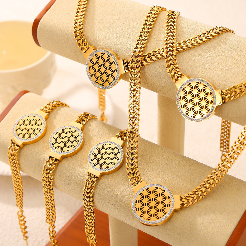 Elegant Titanium Steel Flower of Life Jewelry Set with Multi-layer Chain