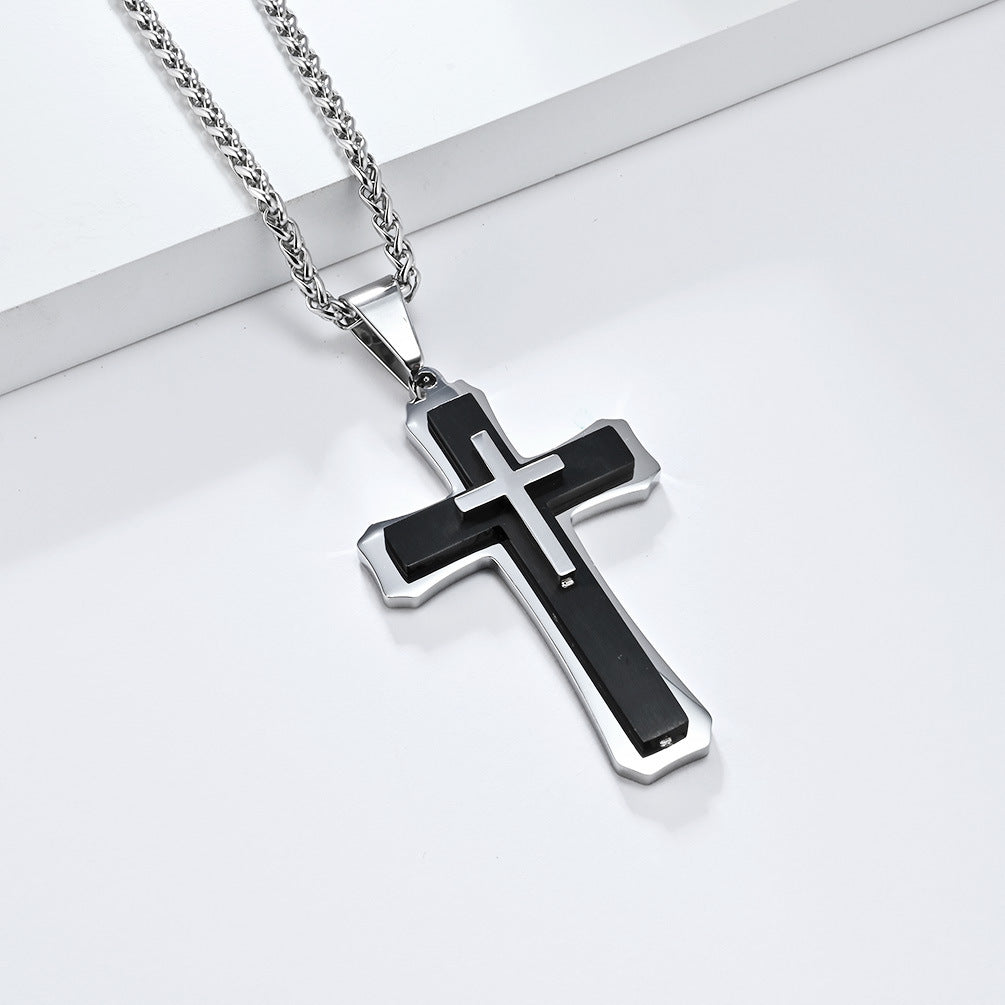 Three-Layer Titanium Steel Cross Pendant Necklace for Men