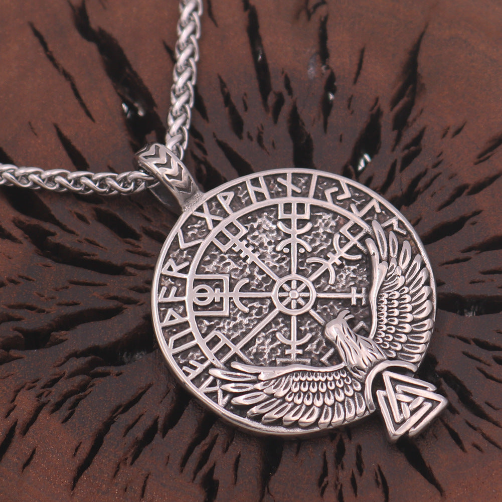 Unleash the warrior within with our Cross border hot selling Viking Rune Eagle Wings Pendant Necklace. Embrace the ancient Nordic vibes and protect yourself with this captivating Compass Totem Jewelry piece designed for men.