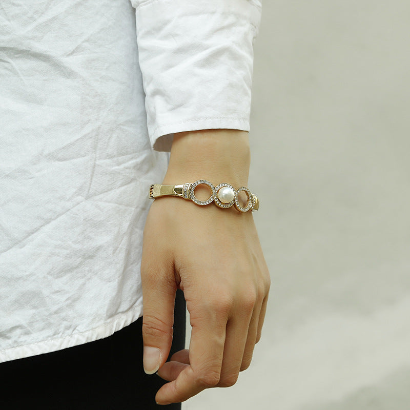 Gilded Geometric Pearl Hollow Bracelet crafted in Titanium Steel
