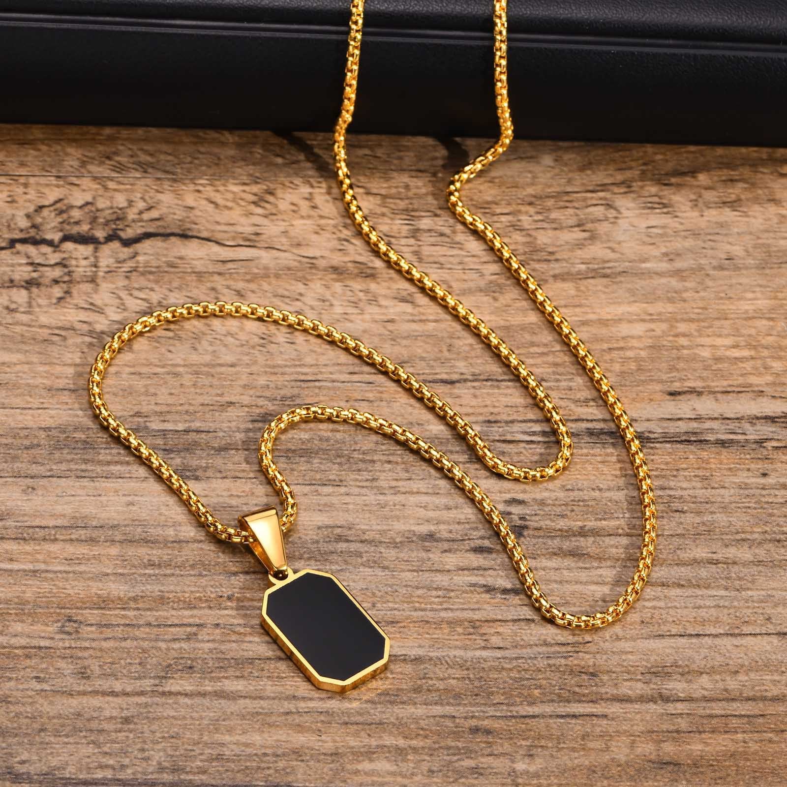 Introducing the exquisite Cross-border men's jewelry stainless steel Epoxy pendant geometric rectangular pendant stacked with Cuban chain necklace for men. This unique piece seamlessly blends modern design with timeless elegance, making it the perfect addition to any man's jewelry collection. Crafted from durable titanium steel, the necklace features a stunning geometric rectangular pendant that is accentuated by a sleek Cuban chain, ensuring it stands out on any occasion.