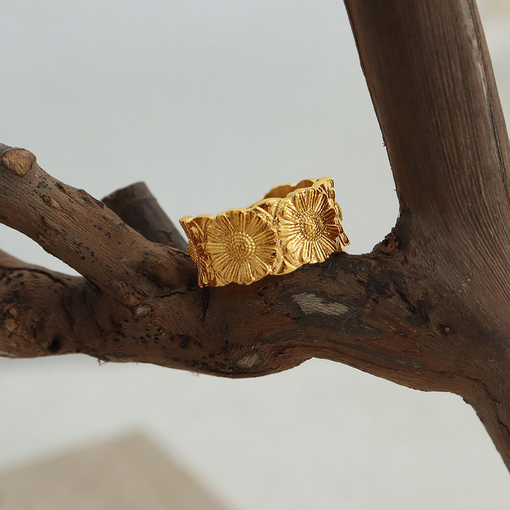Luxurious 18K Gold Plated Steel Ring with Timeless Floral Design
