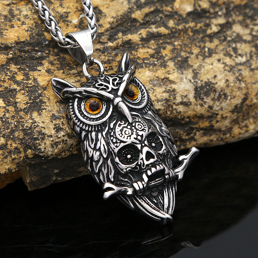 Retro Owl Skull Stainless Steel Pendant Necklace for Men