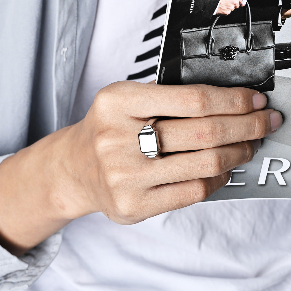 Introducing the Cross-border Simple Neutral Cold Wind Square Smooth Surface Stainless Steel Ring, an essential addition to your everyday accessories collection. Designed with the modern man in mind, this ring effortlessly combines style and functionality, making it the perfect choice for commuting wear or any casual outing.