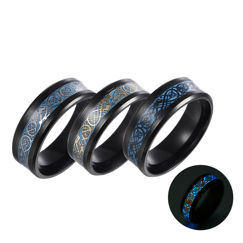 Shouman Jewelry Stainless Steel Dragon Pattern Men's Ring with Luminous Colors