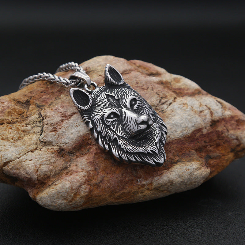Cross-Border Supply Titanium Steel Wolf Head Pendant Necklace