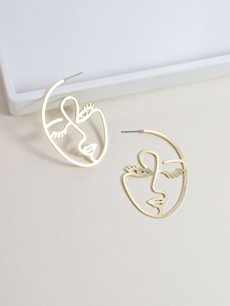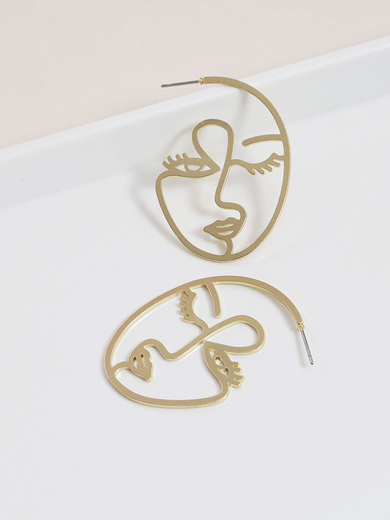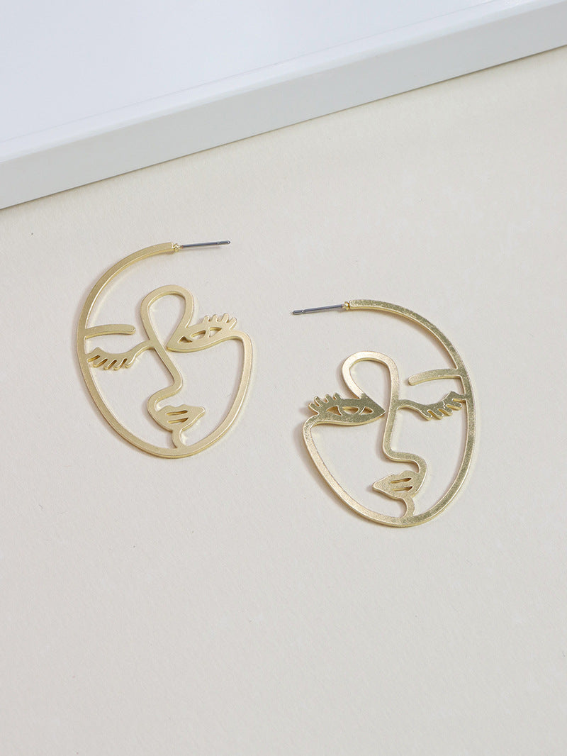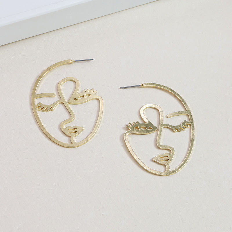 Introducing our Cross Border Trade New Jewelry Metal Texture Portrait Earrings, designed for those who appreciate personalized style and artistic flair. Stand out from the crowd with these Exaggerated Abstract Face Hollow Earrings that exude individuality and charm.