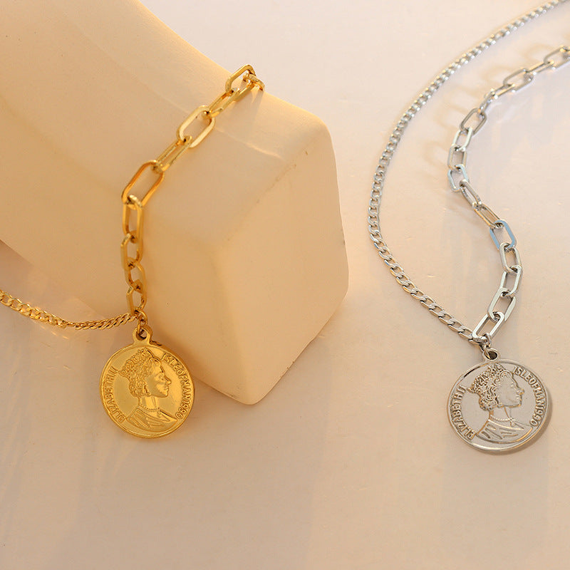 Regal Queen's Charm Necklace - Elegant Round Pendant Chain for Women's Fashion Jewelry