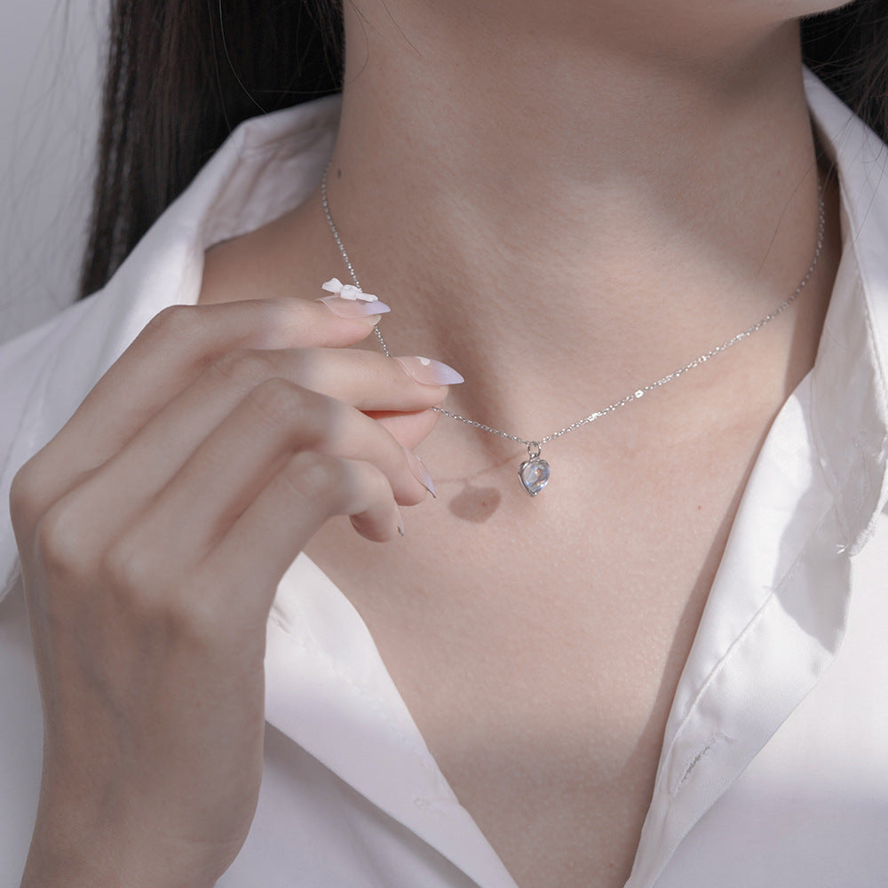 Crystal Heart Shape Pendants Collarbone Necklace for Women
