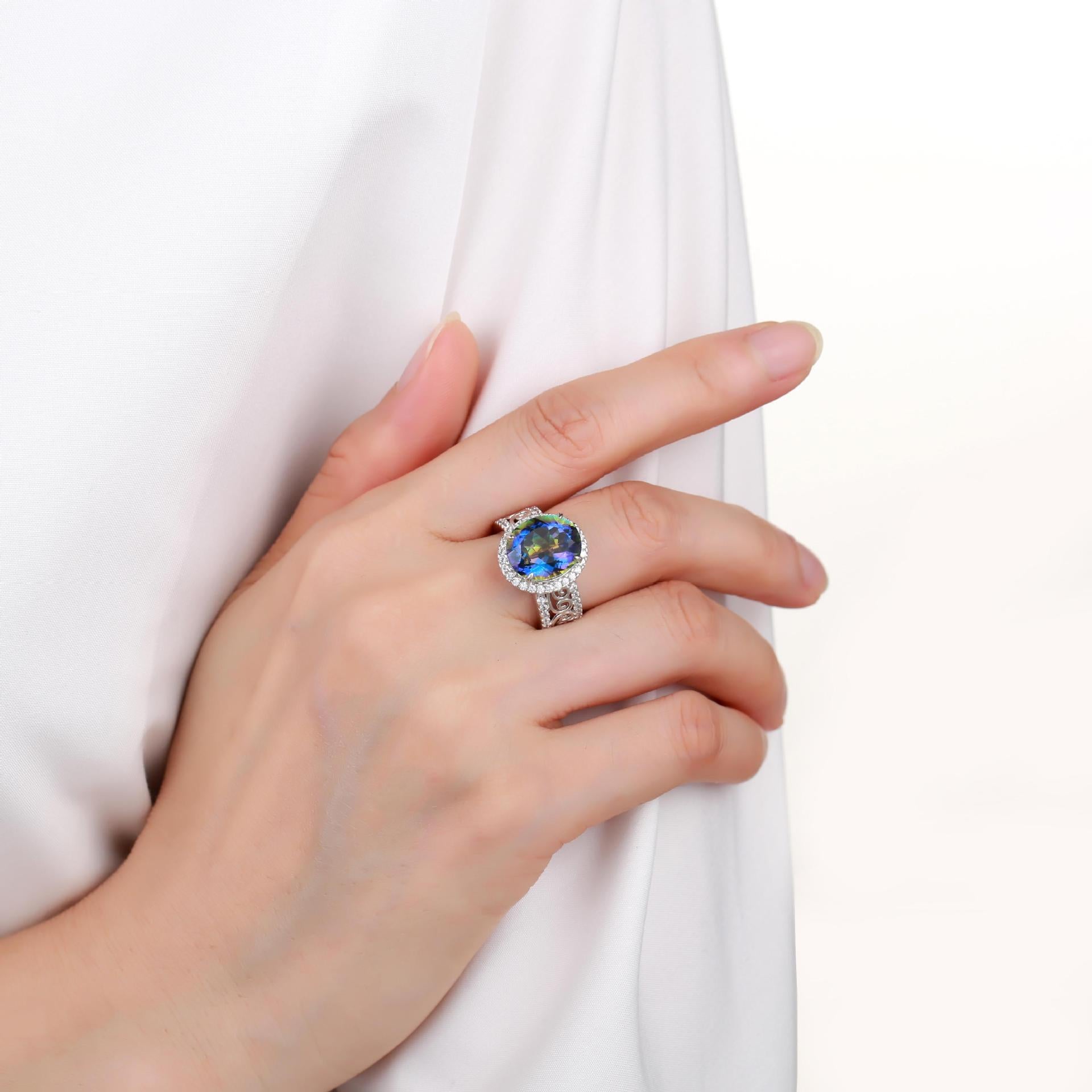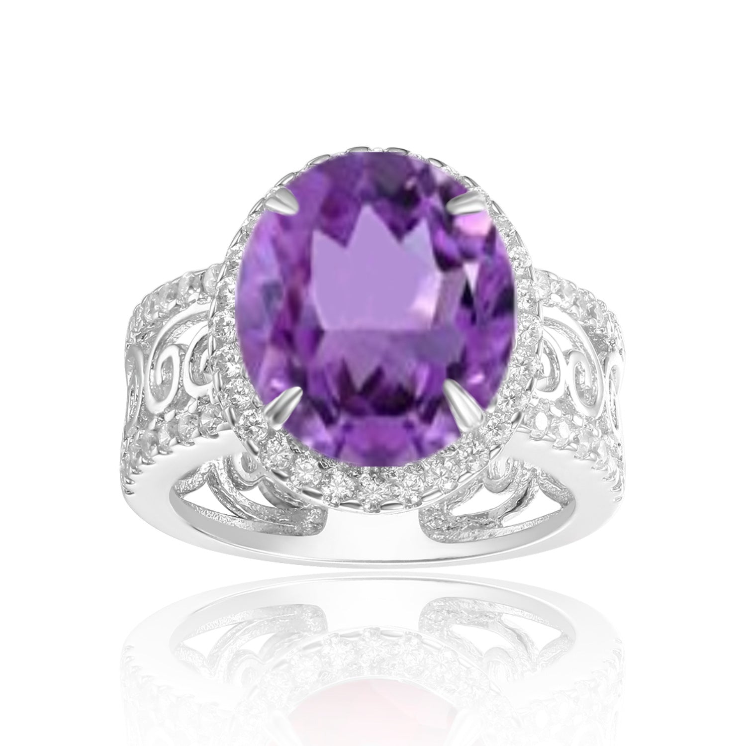 This Natural Gemstone Soleste Halo Cathedral Silver Ring is the perfect accessory for any woman's wardrobe. Crafted with a stunning oval-cut Natural Gemstone at its main stone, the ring is framed with an eye-catching Soleste Halo to make it stand out. The ring arm is decorated with dazzling zircons in a unique hollow pattern, providing an intriguing fashion statement.