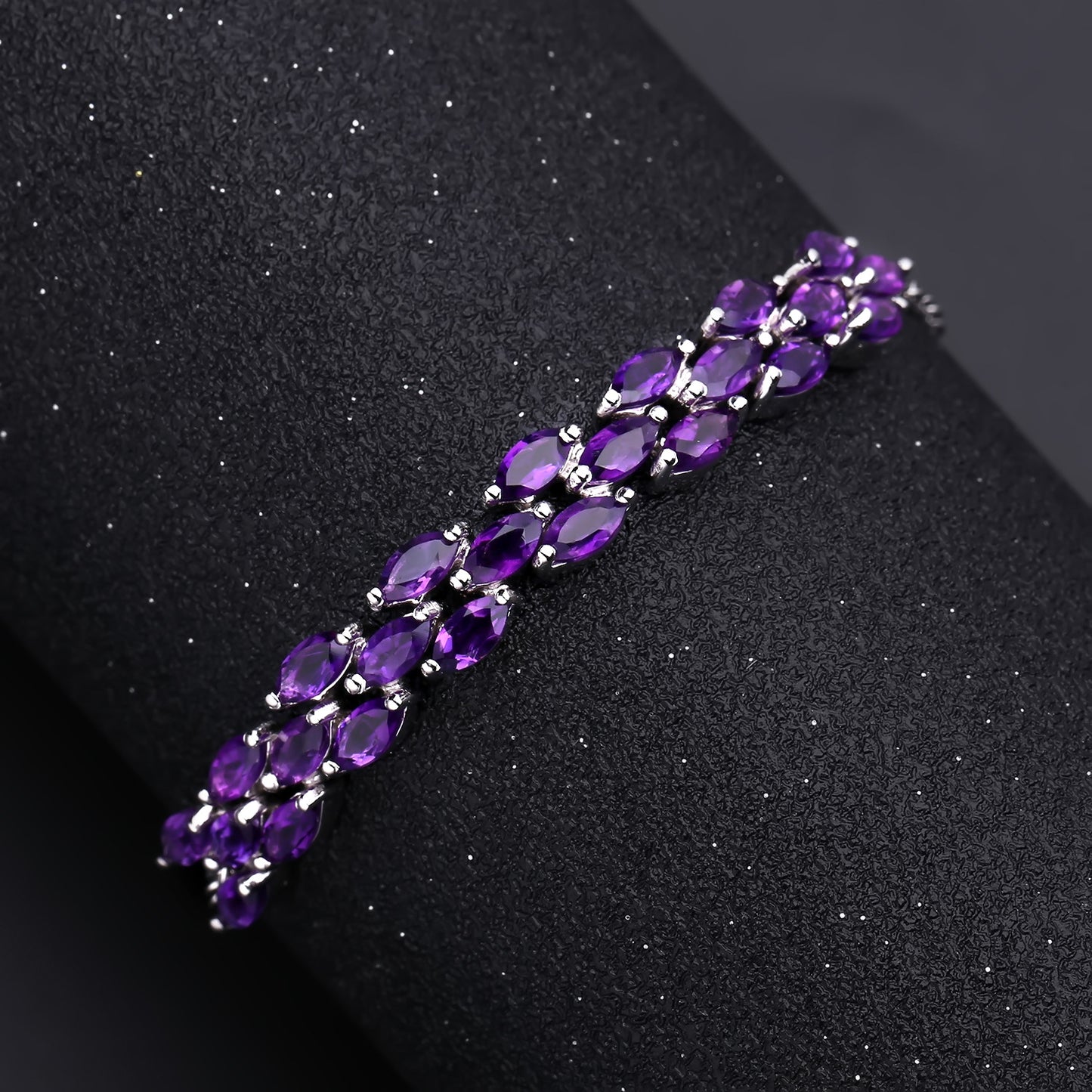 This European and American style bracelet is crafted with natural amethyst gemstones in marquise cut and crafted with sterling silver. It is made from high-quality material, perfect for adding a touch of elegance and femininity to any look. The natural amethyst gemstone has been believed to bring good fortune, strength and protection.