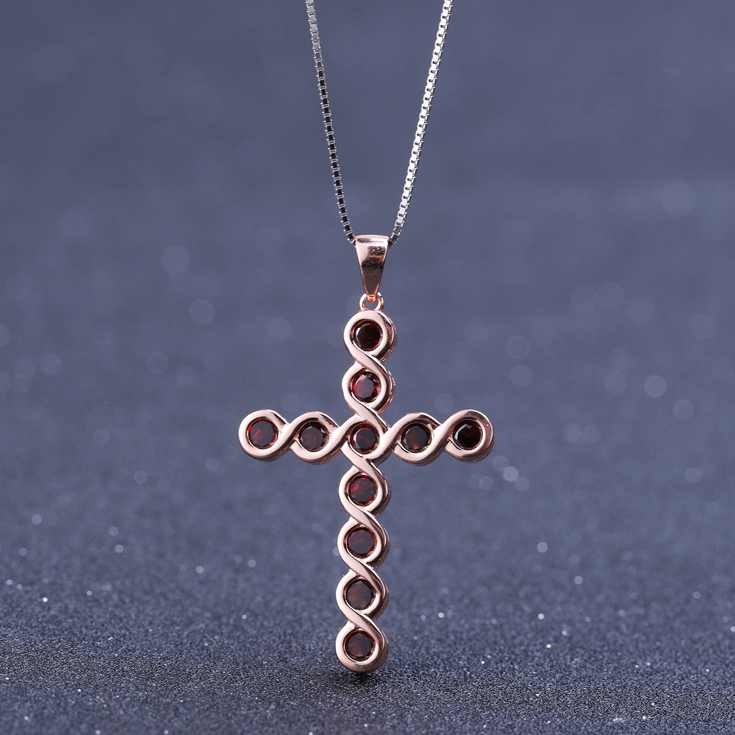 Europen Style Natural Garnet Cross Pendant Plated Rose Gold Silver Necklace for Women