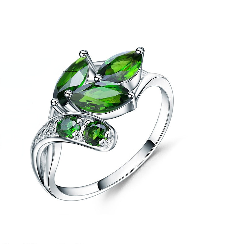 European Fashion Style Inlaid Natural Gemstones Flower Silver Ring for Women