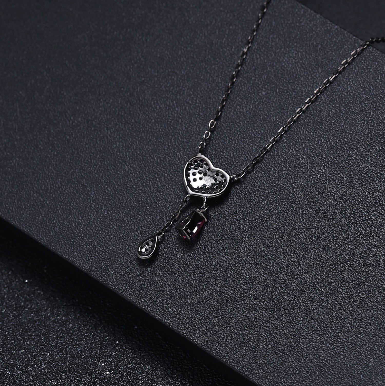This sophisticated Dark Retro Style Personalized Design Inlaid Natural Rose Pomegranate Heart Shape Pendant Silver Necklace for Women is crafted from sterling silver and features a unique heart shape pendant and delicate tassels. It's an ideal for adding a touch of elegance to any outfit.