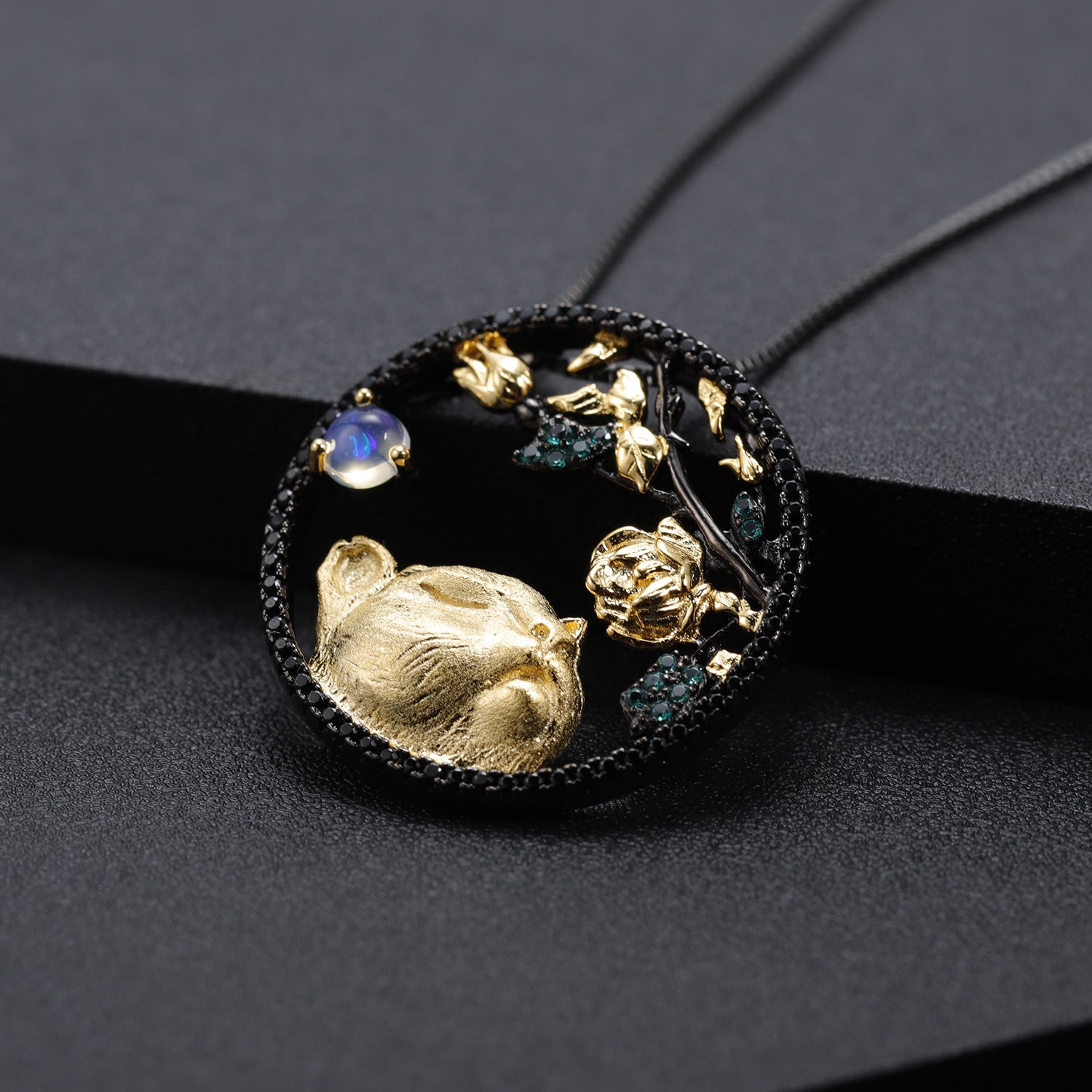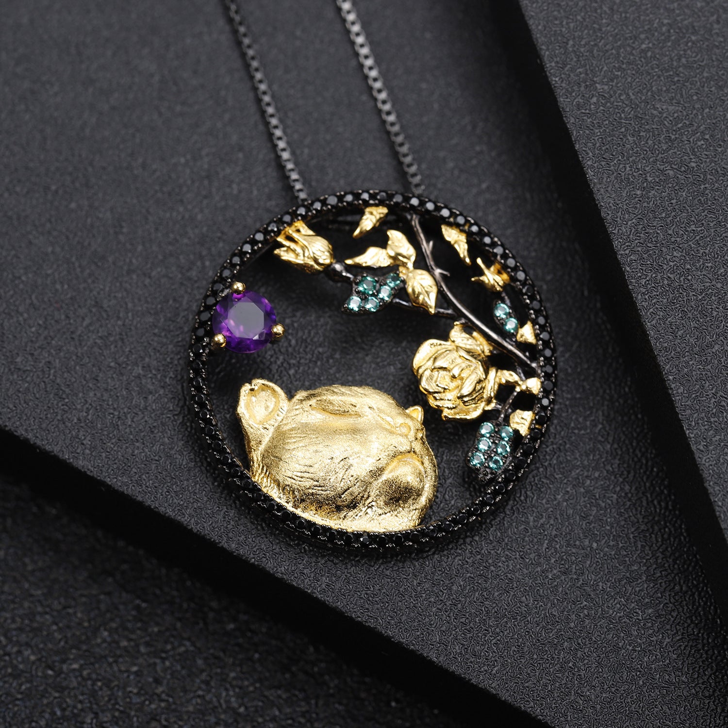 Animal Element Design Zodiac Series Inlaid Natural Colourful Gemstone Tiger Pendant Silver Necklace for Women