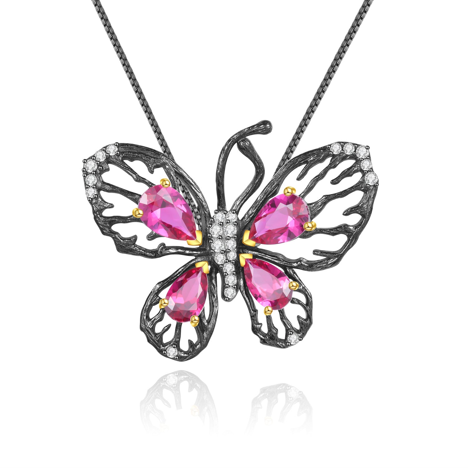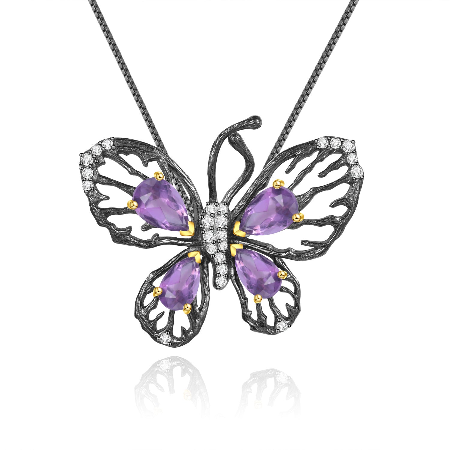 Luxury Butterfly Natural Colourful Gemstone Pendant Silver Necklace for Women
