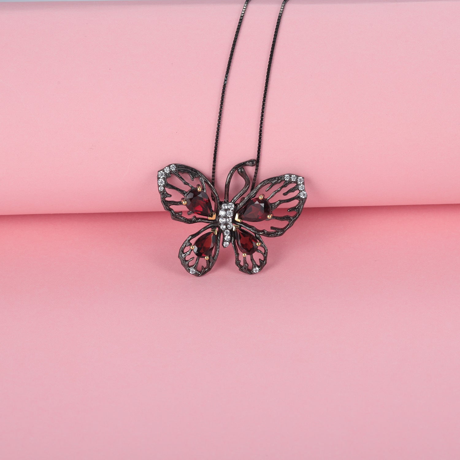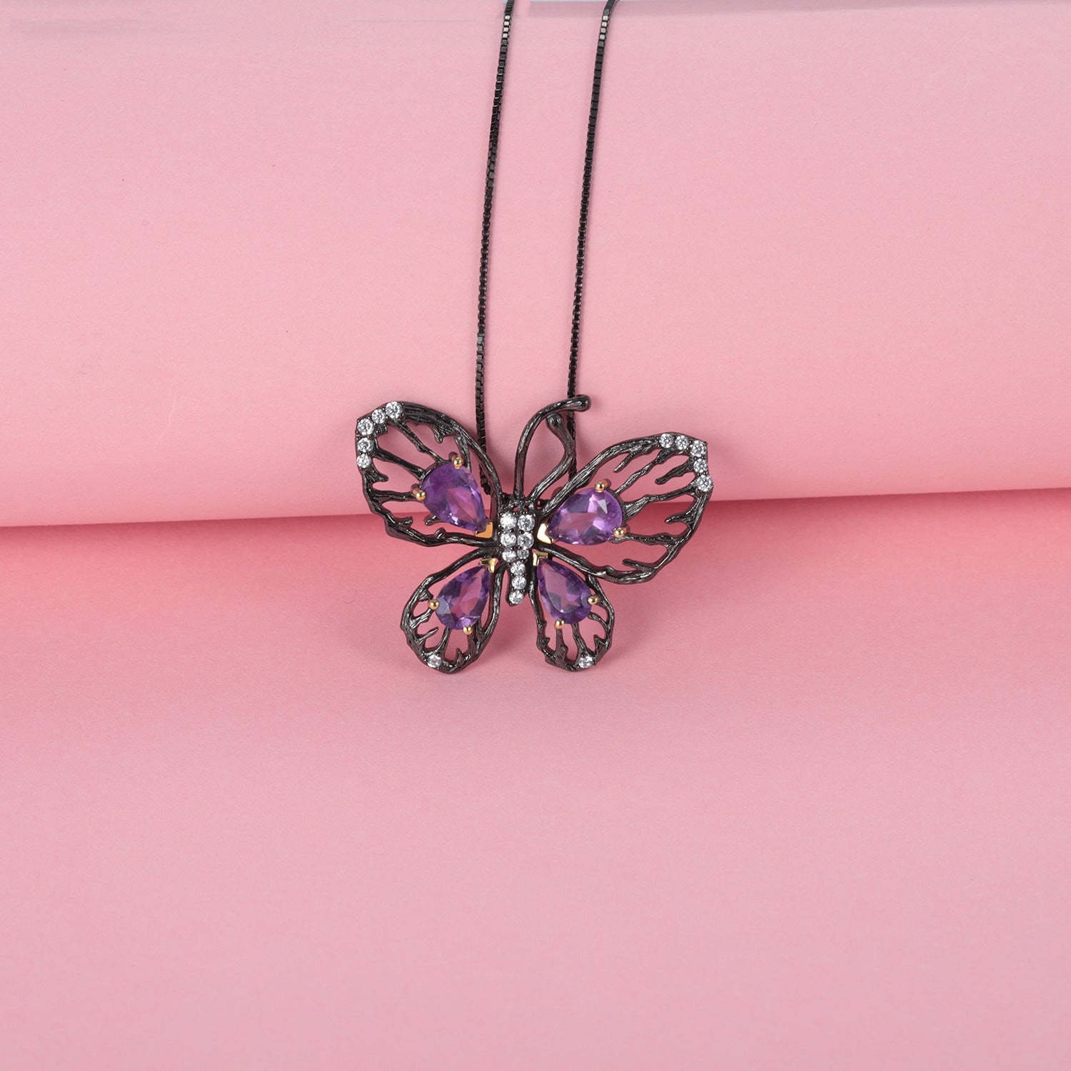 This luxury butterfly pendant necklace is made of sterling silver and natural colourful gemstones, adding a beautiful sparkle to any woman's wardrobe. Its hollow butterfly pendant and natural gemstones give it an elegant, eye-catching finish. Perfect for both formal and casual occasions.