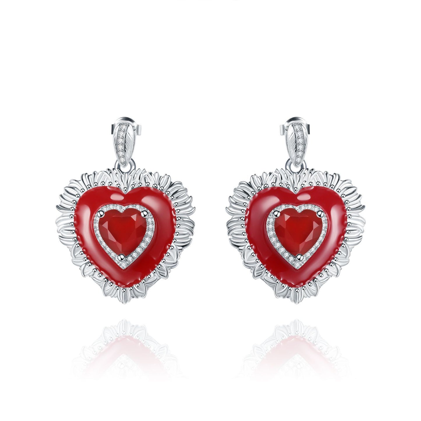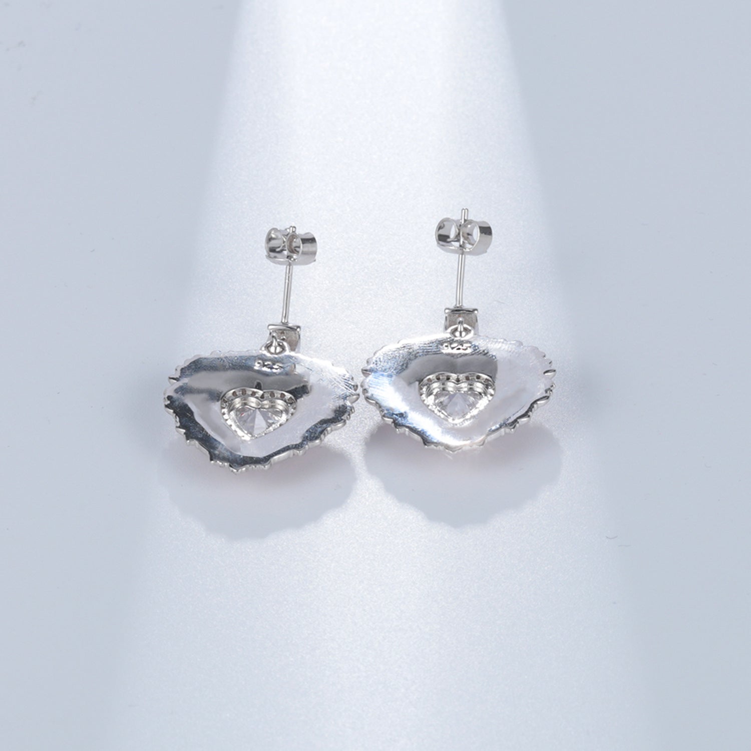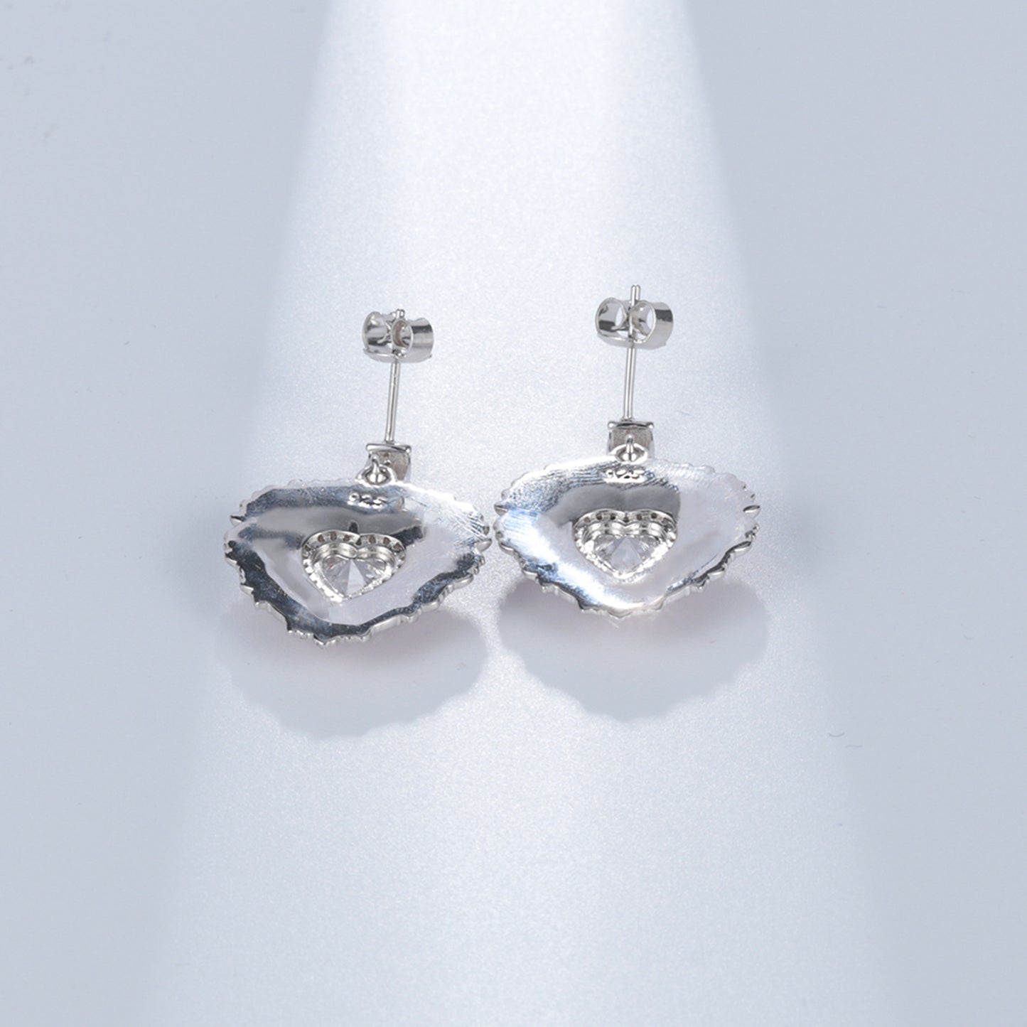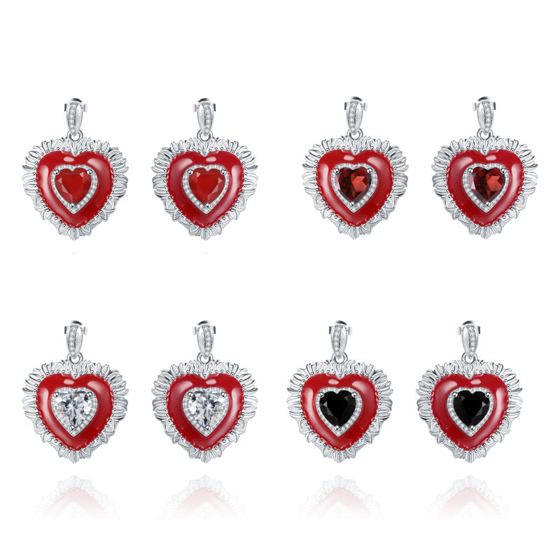 Colourful Natural Gemstone Love Design Silver Studs Earrings for Women