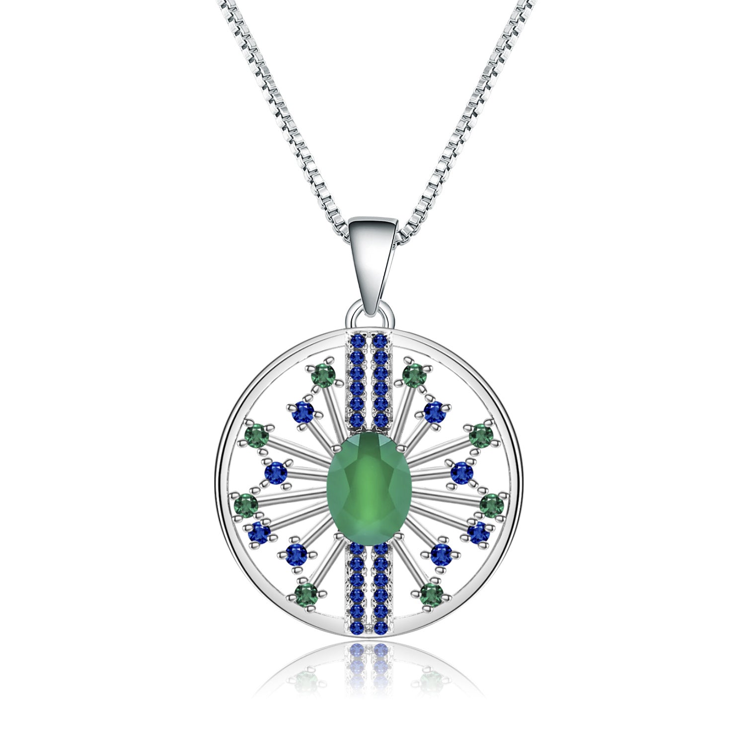 Treat yourself or someone special with this stunning Premium Retro Design Natural Green Agate Pendant Silver Necklace. The circle pendant is decorated with natural green agate and set on a sleek sterling silver chain for a timeless look. Perfect for elevating any look.